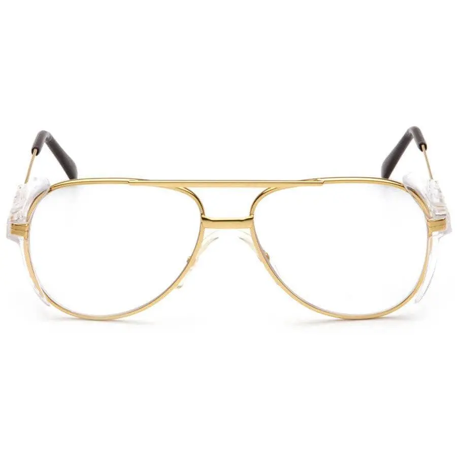Pyramex Pathfinder Aviator Safety Glasses Gold Metal Frame with Clear Lenses