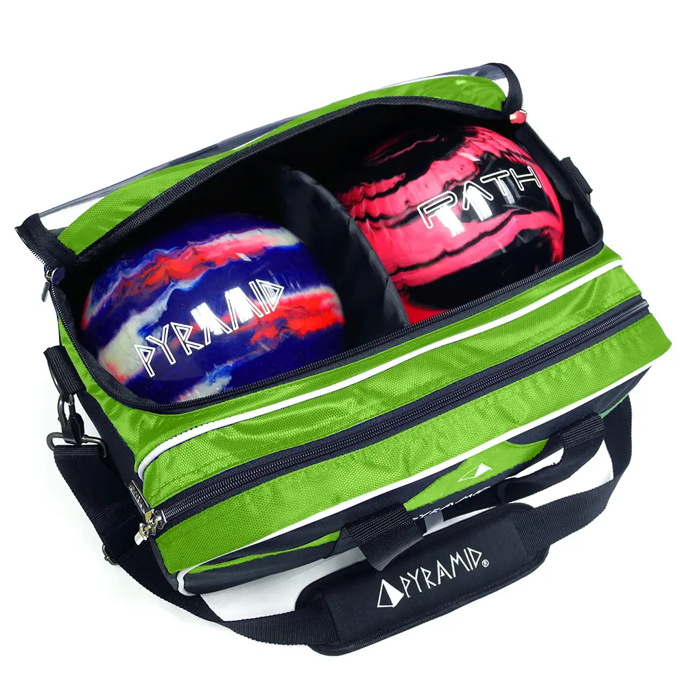 The Pyramid Path Double Tote Plus Clear Top Bowling Bag offers the best bag at the best price in the industry, with a striking combination of Black/Lime Green that’ll make you stand out against the competition. Choose your path with the Pyramid Path Double Tote Plus Clear Top bowling bag!