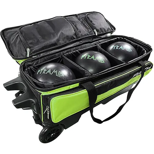 The Pyramid Path Triple Premium Deluxe Roller Bowling Bag offers the best bag at the best price in the industry, with a striking combination of Black/Lime Green that’ll make you stand out against the competition. Choose your path with the Pyramid Path Triple Premium Deluxe Roller bowling bag!