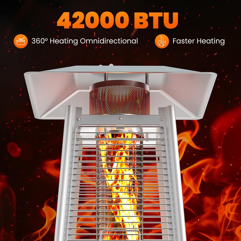 ·Sturdy and Durable: The patio heater features sturdy stainless steel construction to ensure safe and reliable use. Side doors provide easy access for propane tank replacement.
