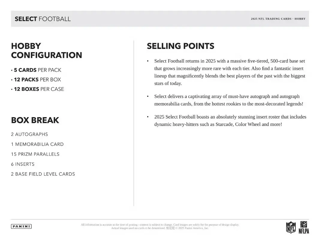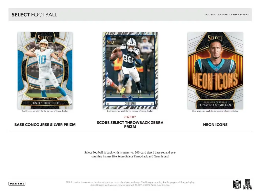 What is a Pick Your Team?: This classic mixer style is called the Pick Your Team (PYT) mixer. Whatever team(s) you purchase you will receive any trading card that is opened live from that team. What You Will Receive: Every team purchased will receive any NFL trading card pulled from their team. Items in this Break: (3) 2025 Panini Select Hobby Box