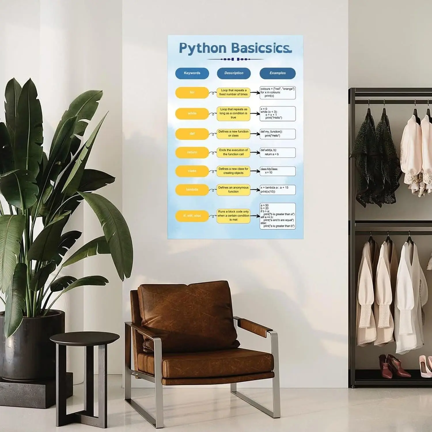 Python Cheat Sheet Poster Computer Science Coding Posters Canvas Wall Art Poster for Bedroom Living Room Decor 12x18inch(30x45cm)