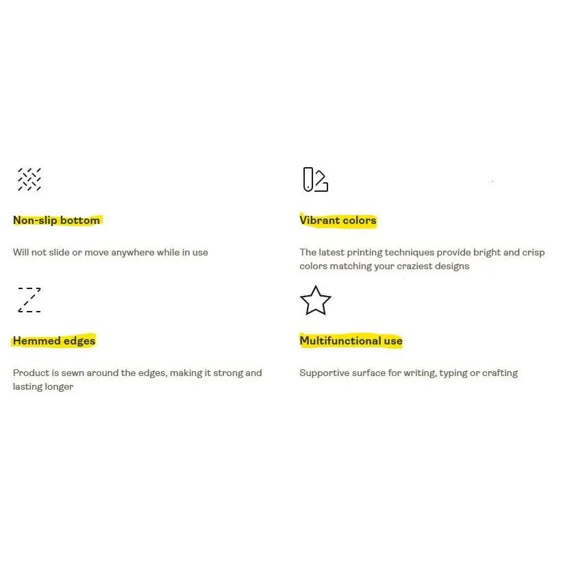 Hemmed edges: Product is sewn around the edges, making it strong and lasting longer