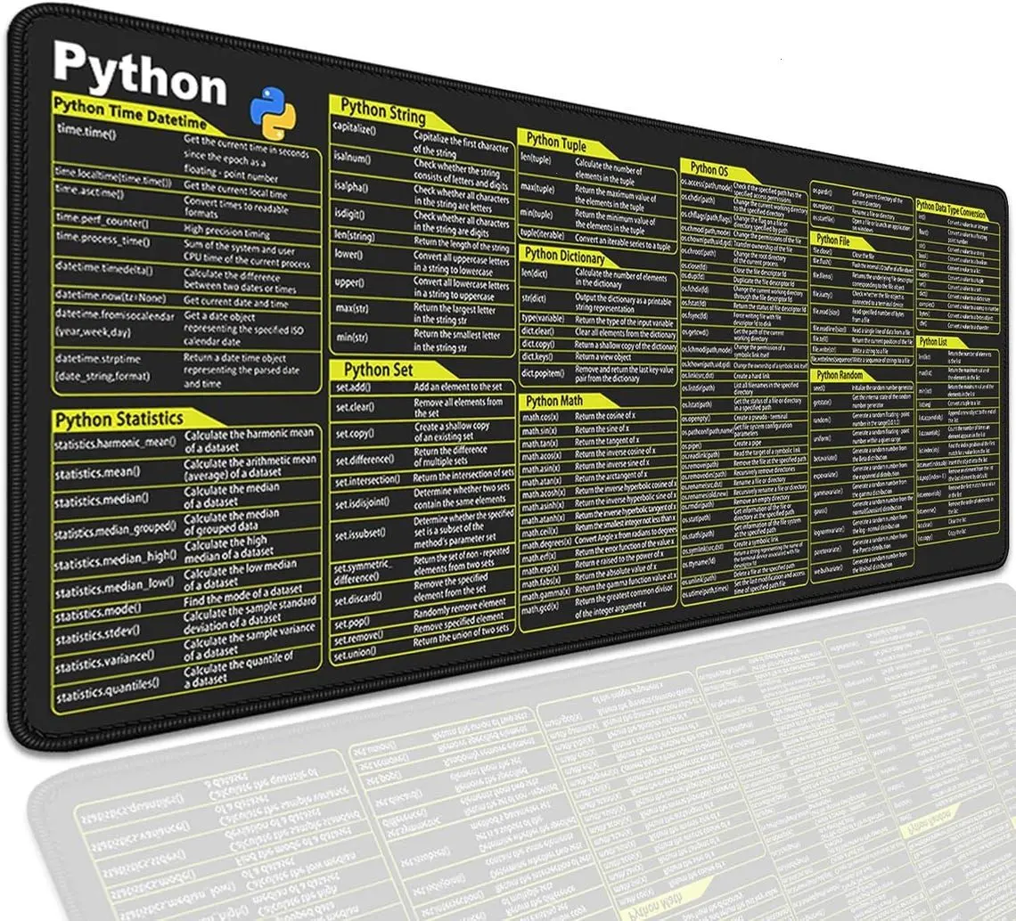 Python Cheat Sheet XL Desk Mat Programmer Workspace AccessoryEnhance Gaming Large mat