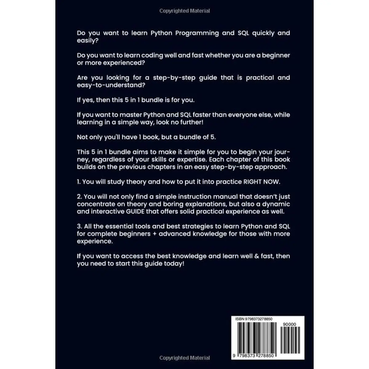 Python Programming and SQL: 5 Books in 1, isn't just a book. It's a career booster ✅ Whether you're aiming for a new job, freelancing, or developing your own software, this guide has everything you need. Suitable for all levels, you will find practical advice and skills to propel your career, set you apart from your peers, and make you an invaluable asset to any organization. Boost your performance and achieve your goals with the comprehensive knowledge provided in this bundle.