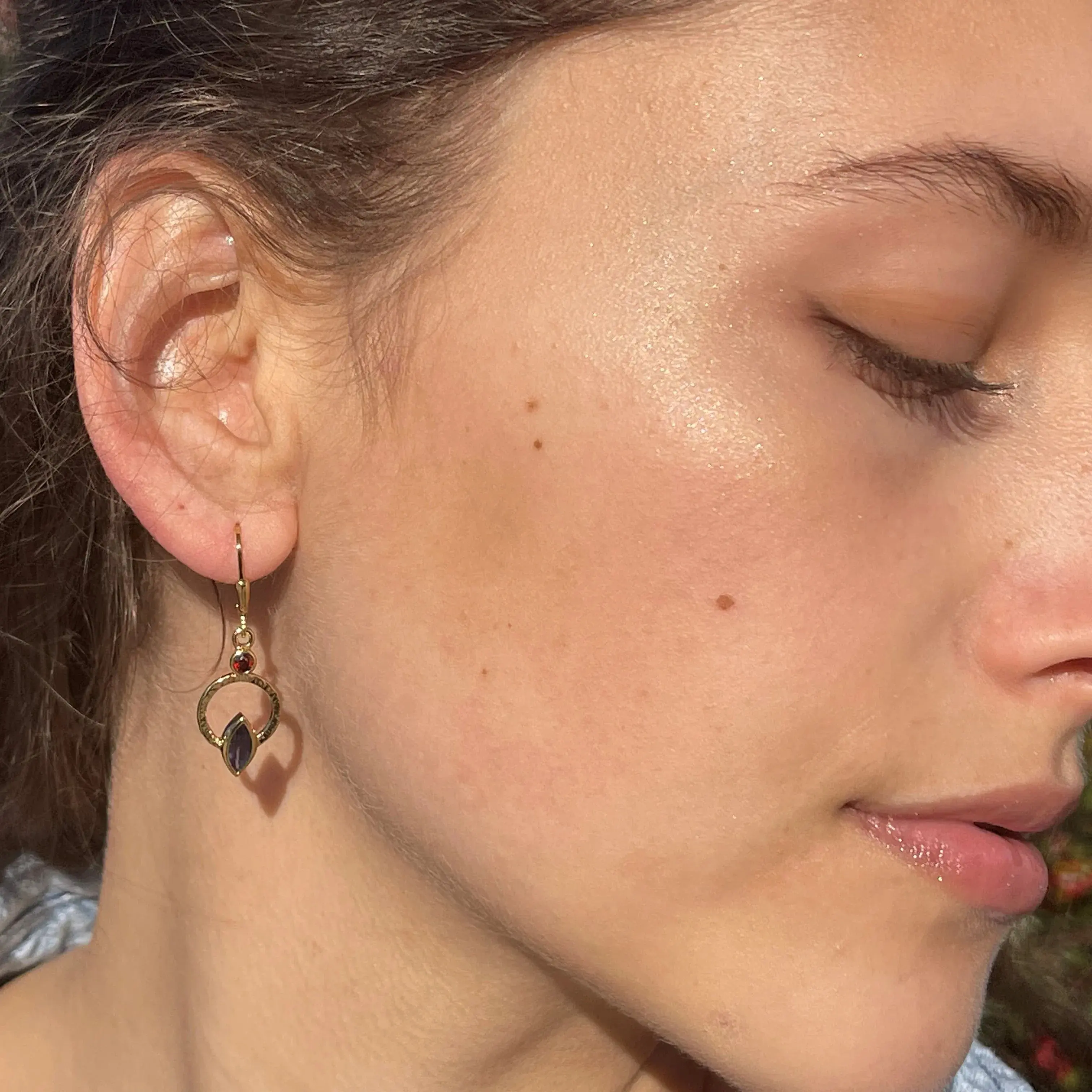·Hammered hoop is accented with marquise and round gemstones in six combinations: