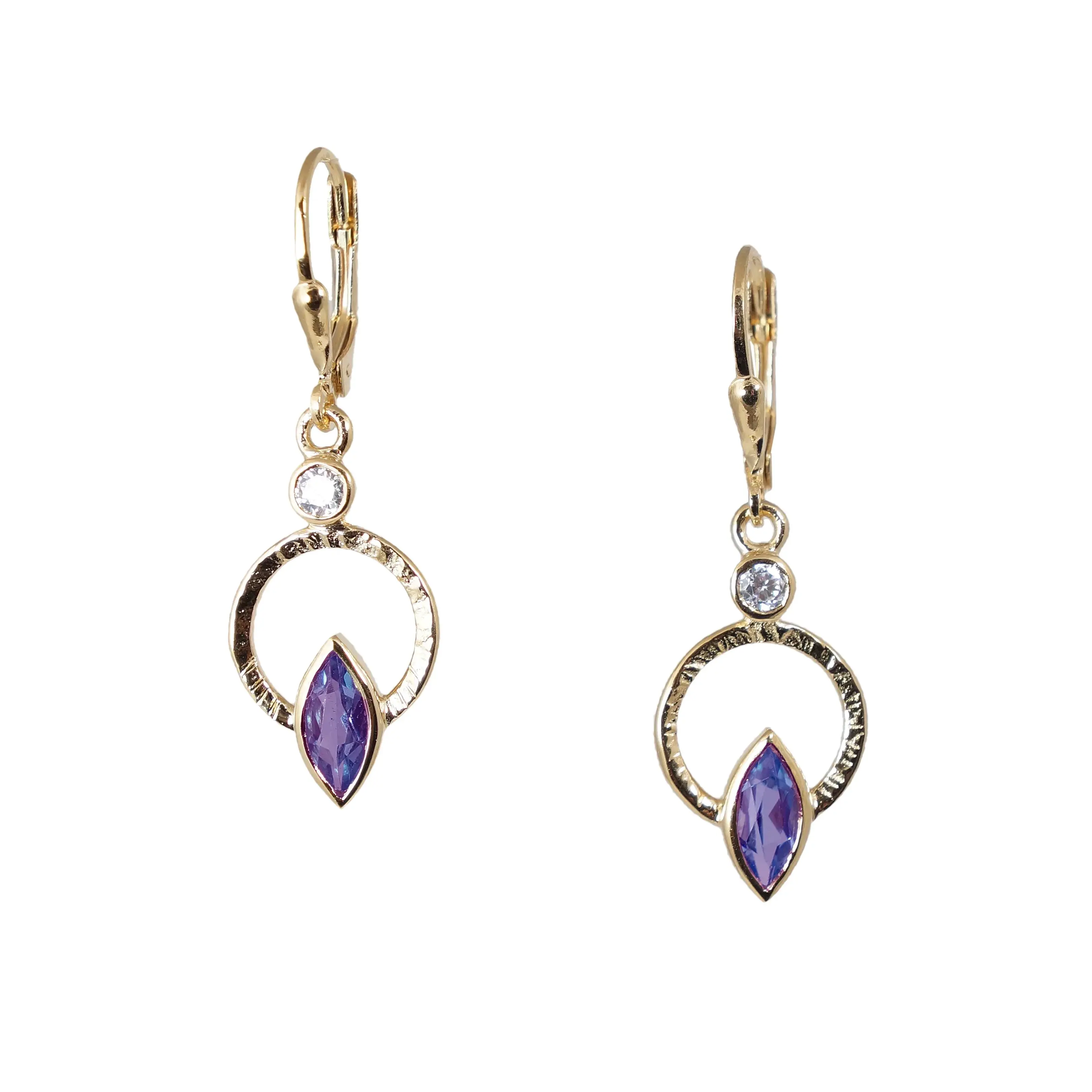 Simple geometric shapes combine with colorful gems to give the the Q earrings a modern yet elegant aesthetic.