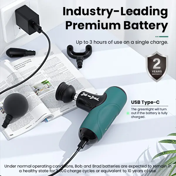 15W PD Fast Charging & Whisper-Quiet Operation: The Q2 Mini Massage Gun can be fully charged in just 1.5-2 hours using a fast charger (not included). The multifunctional USB Type-C port allows for charging with either A-C or C-C cables, making it compatible with any adapter or power bank for convenient fast charging. Whisper-quiet, it operates as low as 40 decibels, perfect for use at home, the gym, or the office without disturbing others.