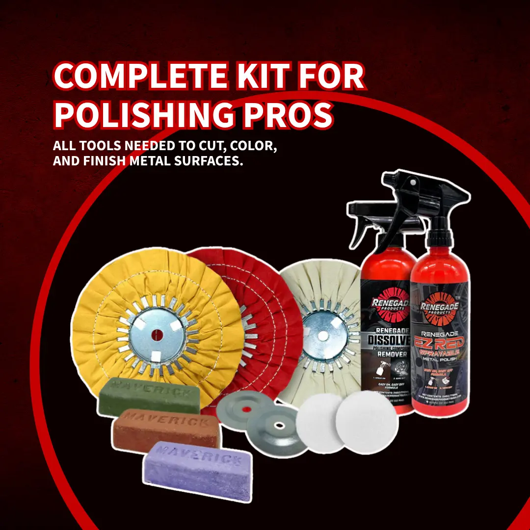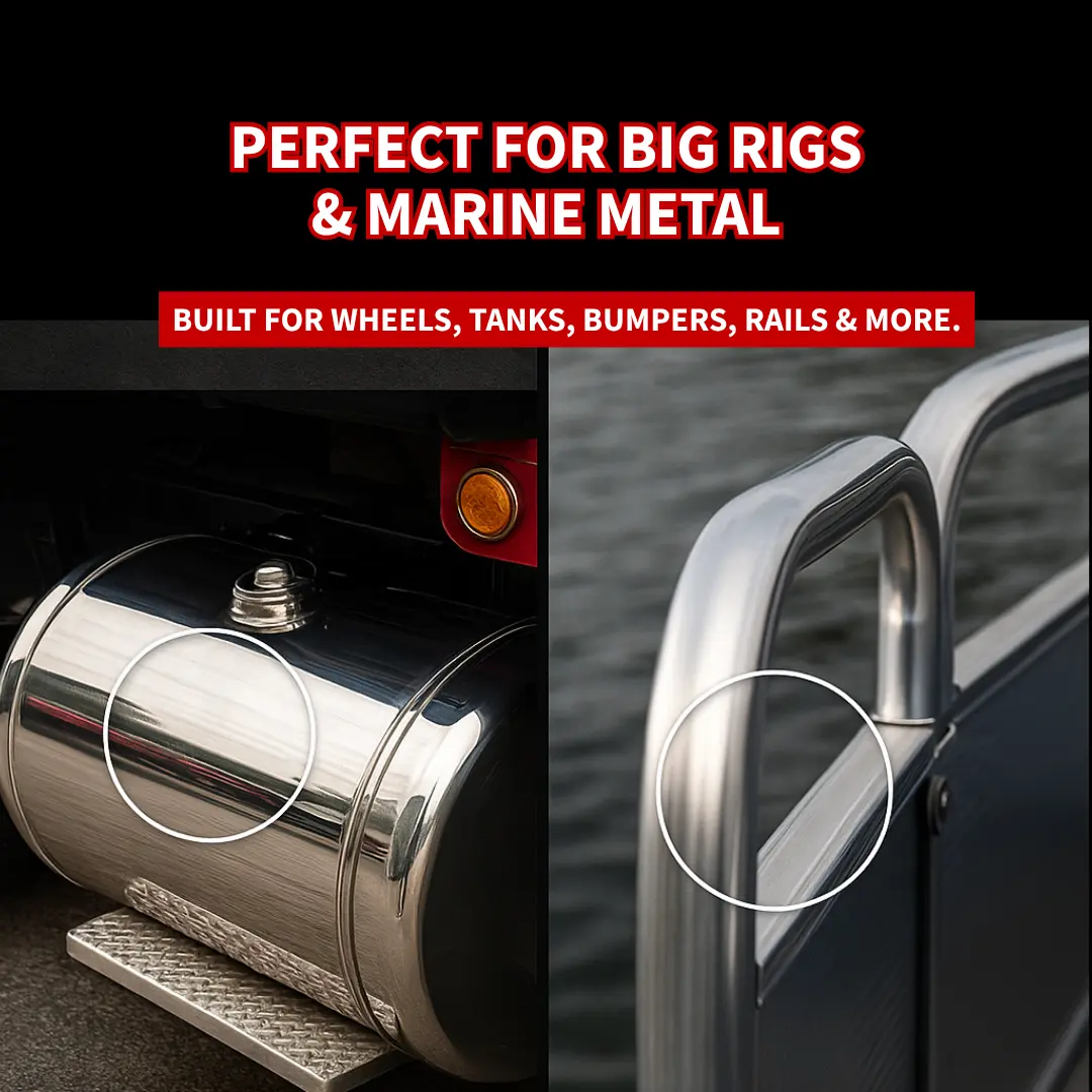 Renegade's Q36 Dual Metal Polishing Kit transforms your vehicle's appearance effortlessly! Perfect for aluminum and stainless steel, this kit mimics professional shop practices. Use it on wheels, fuel tanks, and bumpers. It's ideal for big rigs, marine applications, and general metal restoration. Bring back the shine and luster to your surfaces with ease.