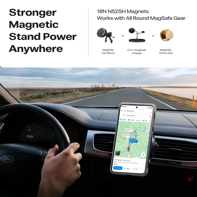 ·SUPER MAGNETISM: Powered by exclusive Halbach Array technology and premium N52SH neodymium magnets, this case delivers up to 200% stronger magnetic force than standard magnets. It locks instantly and securely onto circle magnetic accessories like chargers, power banks, and car mounts—ensuring a firm, wobble-free connection wherever you go