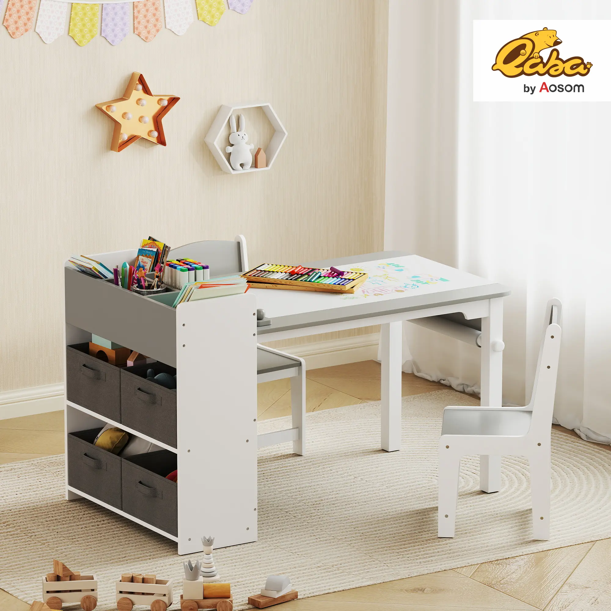 ● Includes a table and two chairs to allow for varied activity setups;