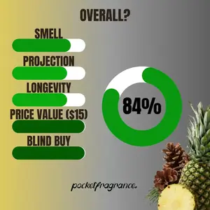 I bought this as a blind buy after seeing many reviews about it and it did not disappoint. It smells phenomenal with the main note as pineapple. It’s a very citrusy sweet scent with undertones of wood and the dry down is incredible. Definitely worth the purchase if you like fruity and woody scents.