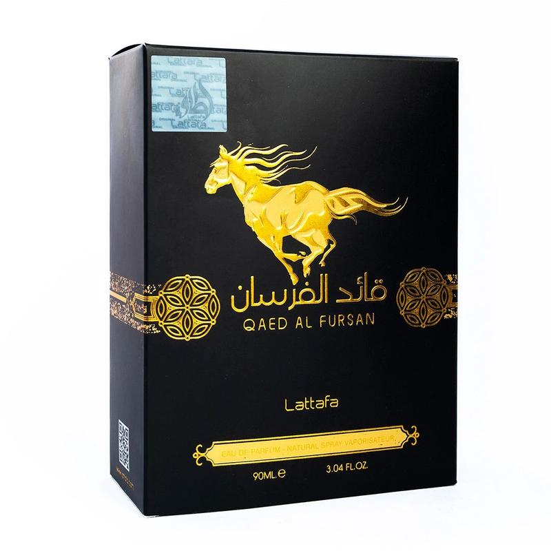 'QAED AL FURSAN' Perfume by Lattafa encapsulates strength and confidence. It offers a captivating experience with a carefully curated blend of aromatic notes. This 3.04 Oz (90ml) perfume leaves a lasting impression. Perfect for those seeking to make a statement.