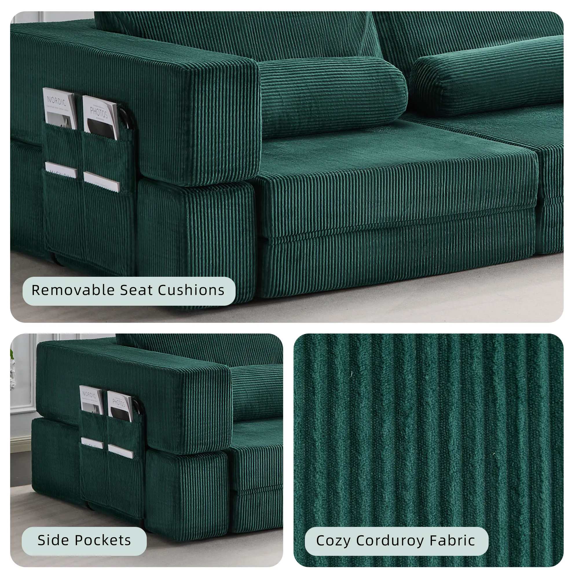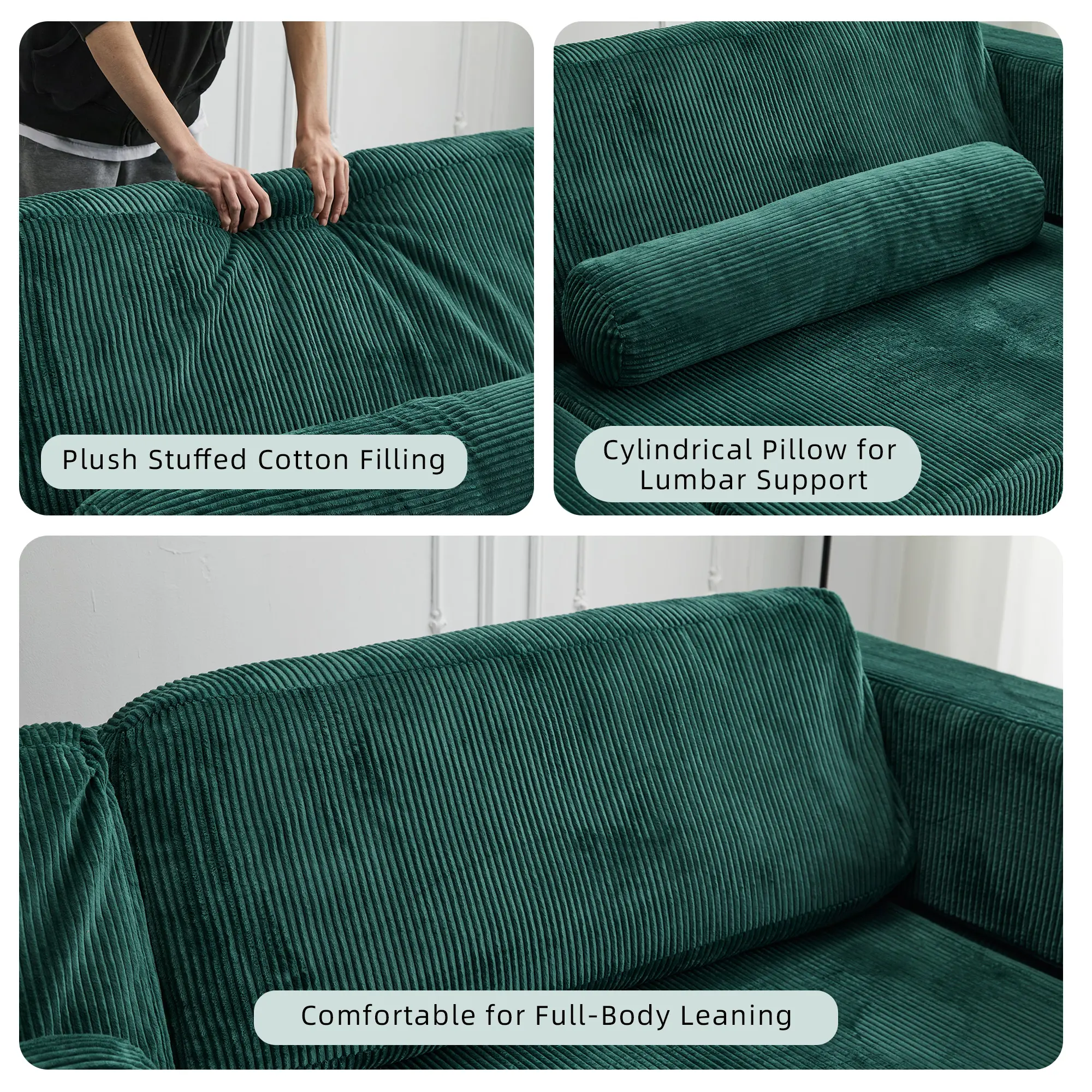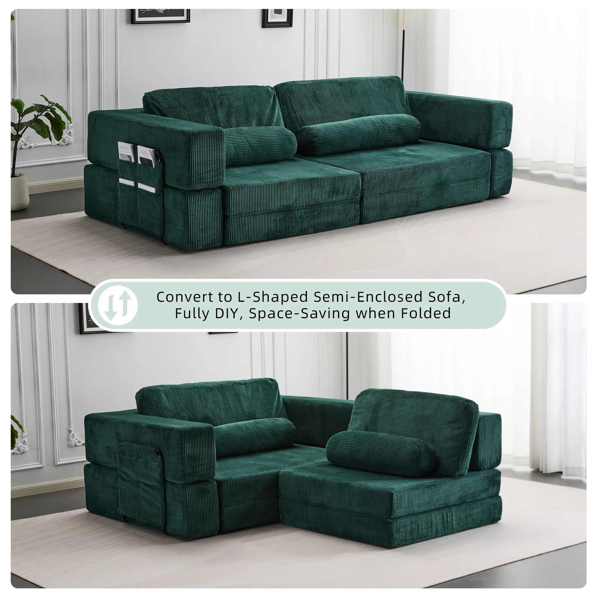 ¡Function: Folded: A spacious 3-4 seater sofa for the whole family. Unfolded: A massive, comfortable floor cushion or lounging pad. Creative Play: Reconfigure the modules to build a fun "fort" or "castle" shape, sparking creativity for kids and adults alike.