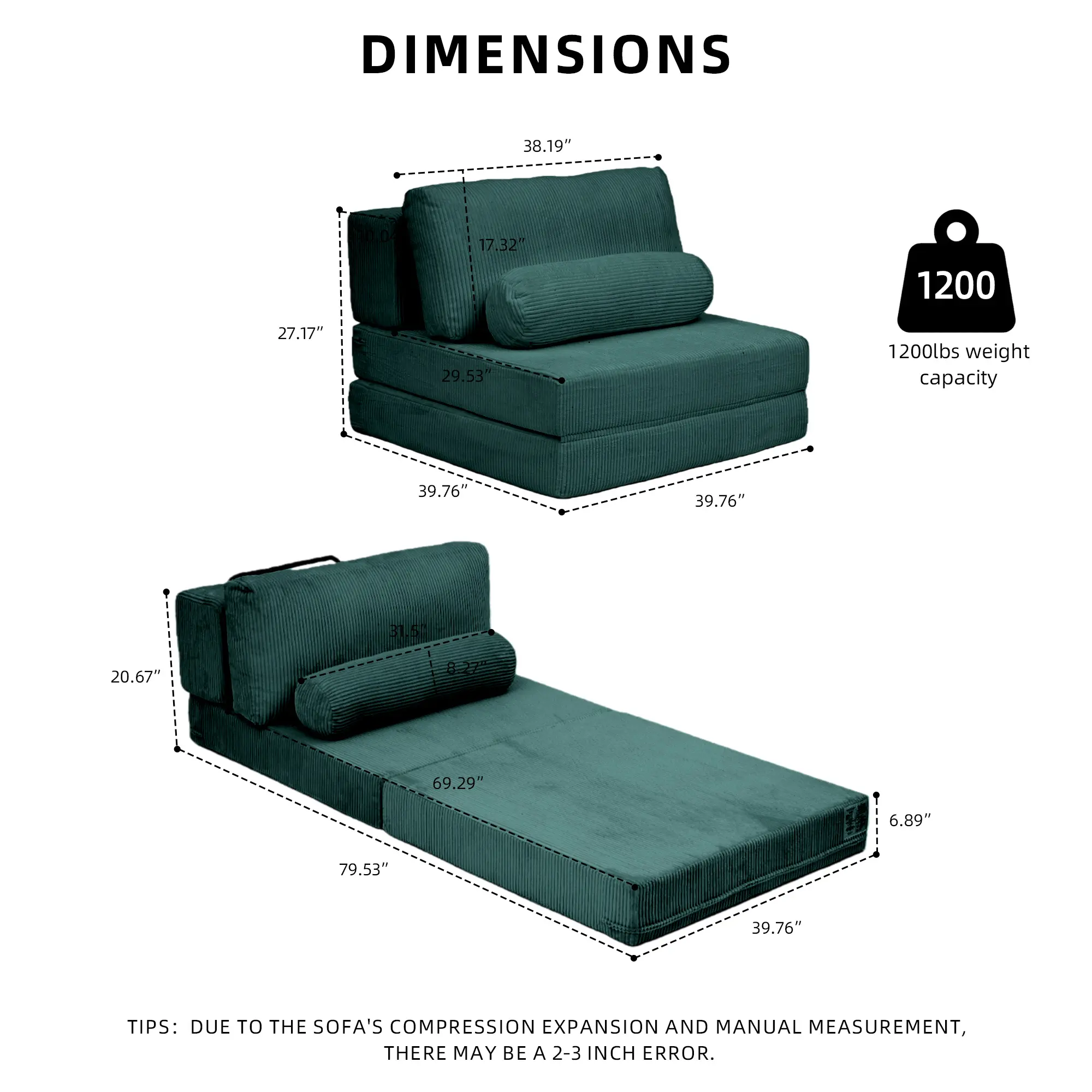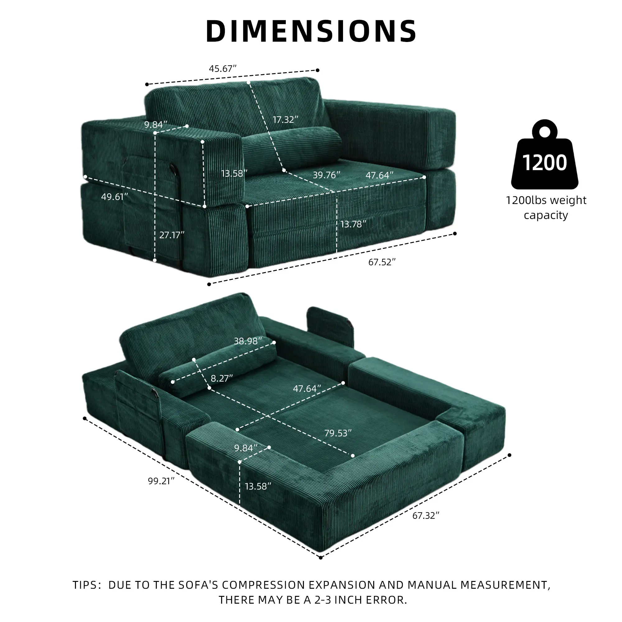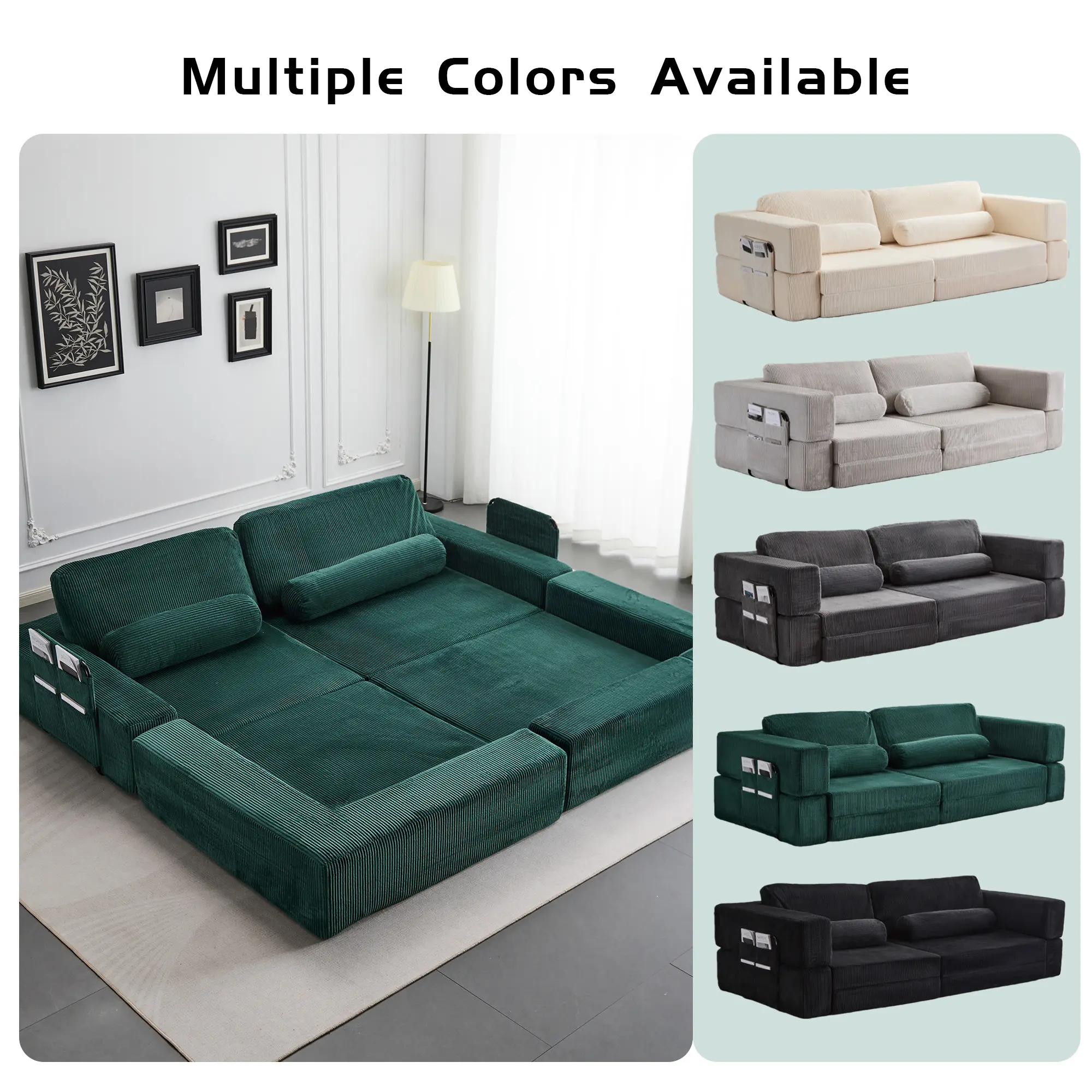 ¡Multi-Functional Use: Seamlessly transitions from a standard sofa to a comfortable bed or a sprawling floor lounger.