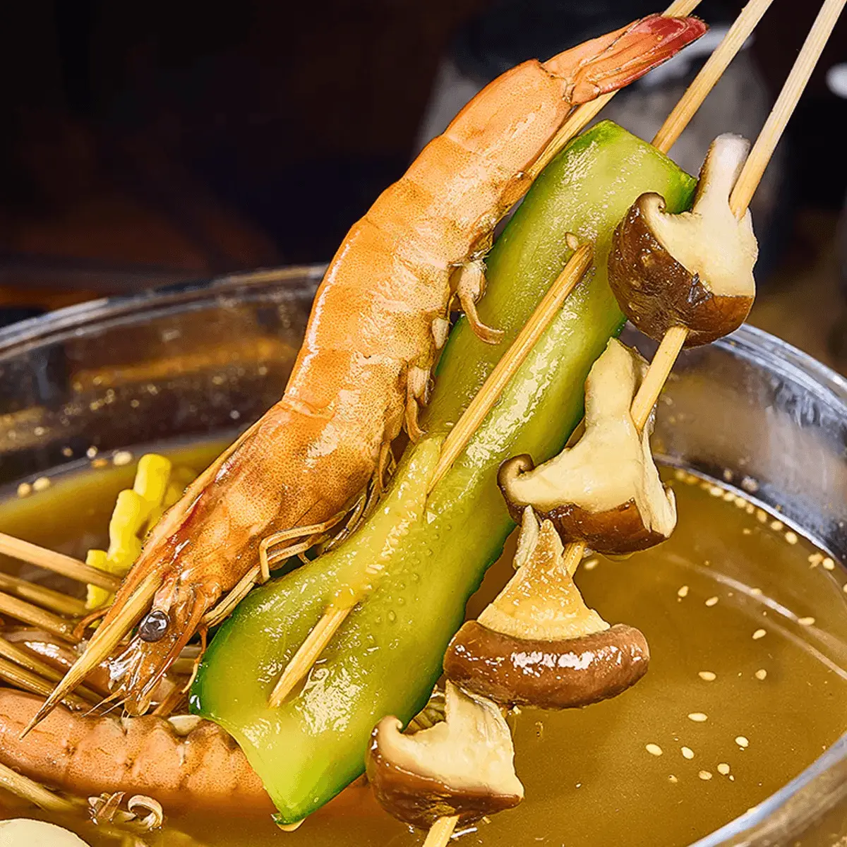 ·Yan'an Zhan Zhan Hot Pot, also known as Yan'an Chuan Chuan or Spicy Skewers, features a variety of ingredients skewered on thin bamboo sticks.
