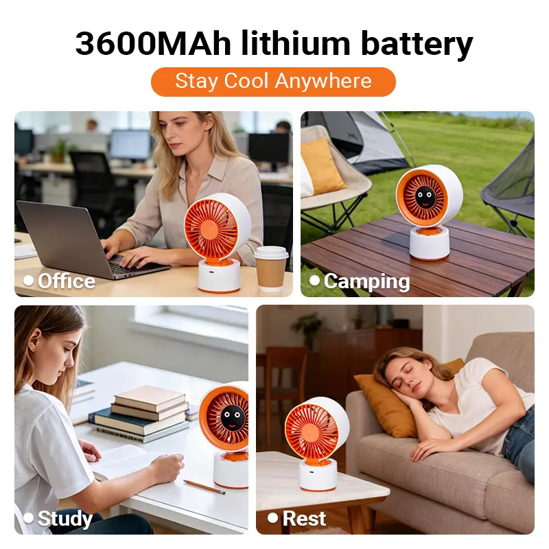The 2026 Edition Desktop Emoji Loop Fan offers dual airflow channels and auto oscillation. It features ultra-long battery life, making it the ultimate turbo cooling essential for dorms and offices. Powered by an AI smart chip, this fan ensures efficient cooling.