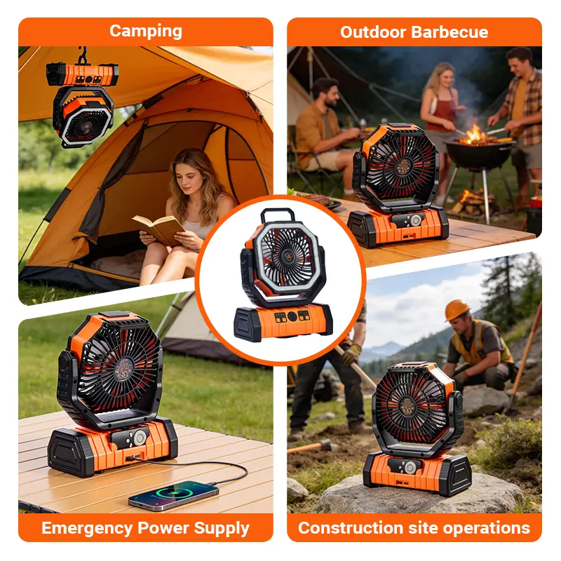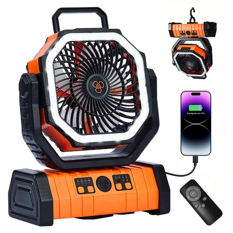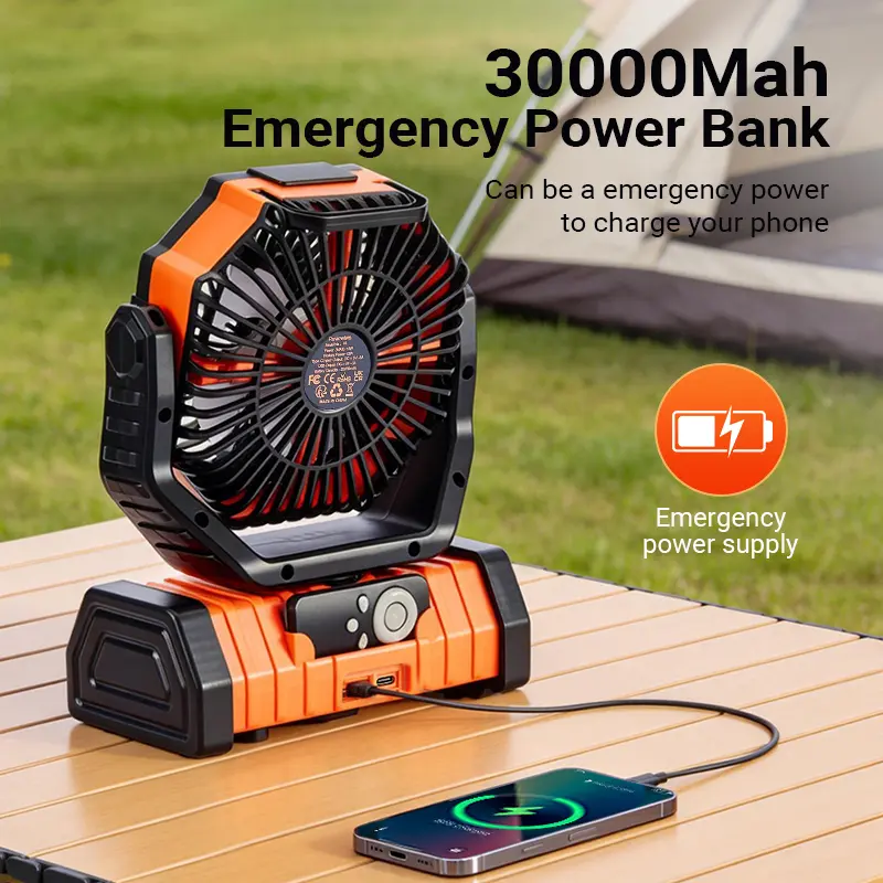 ✨ Qawtor2026 Upgraded Rechargeable Camping Fan with 30000mAh battery & LED light. This portable emergency fan features a 360° rotatable hook and dual motor option, perfect for outdoor camping. Model F6, made of ABC+PC material, comes in orange/green. 🌿