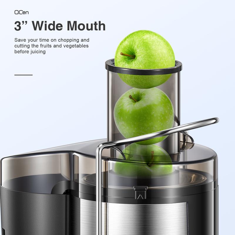Qcen Juicer Machine, 500W Centrifugal Juicer Extractor with Wide Mouth 3” Feed Chute for Fruit Vegetable, Easy to Clean, Stainless Steel, BPA-free