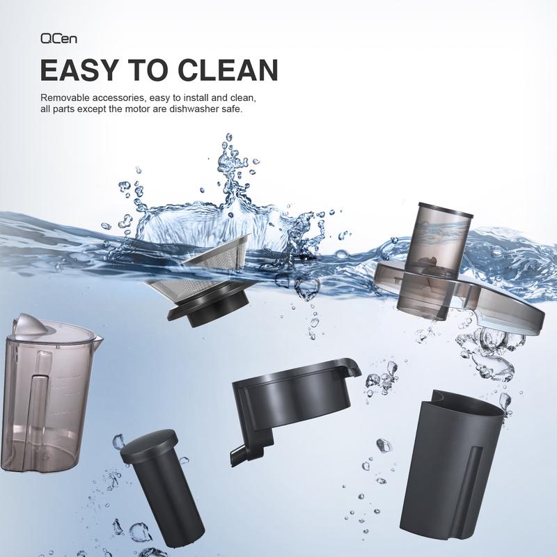 And all spare parts are disassembled, so the juicer machine is easy to install and clean, dishwasher safe for other parts except the motor.