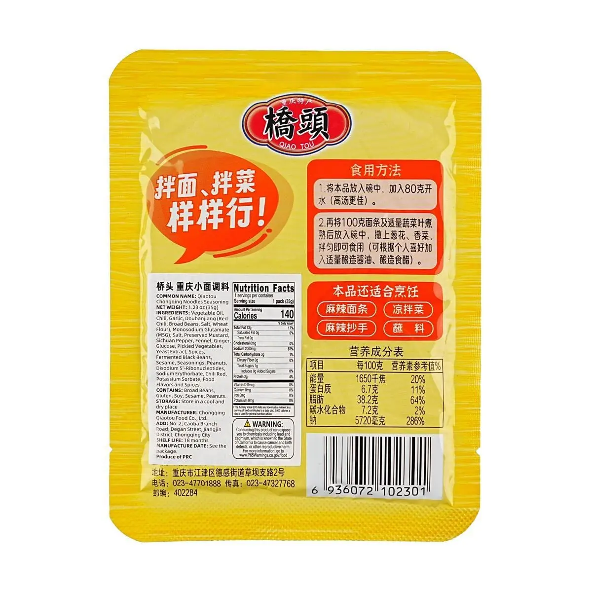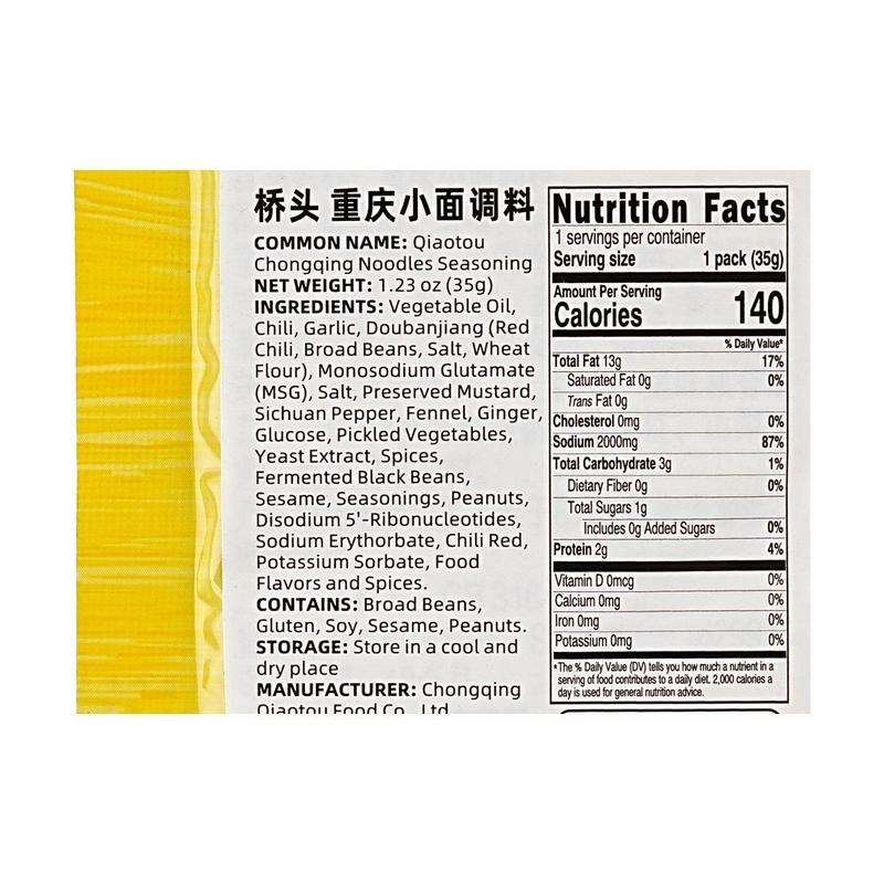 🌶️ Experience the Authentic Taste of Chongqing: QIAO TOU's Chongqing Noodle Seasoning brings the rich and spicy flavors of Chongqing straight to your kitchen. Perfect for noodle lovers!