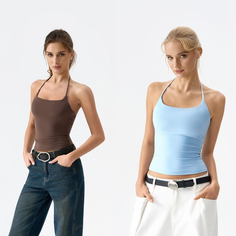 QINSEN Self Tie Halter Neck Basic Shirts for Women