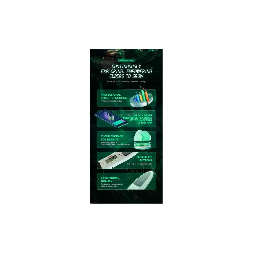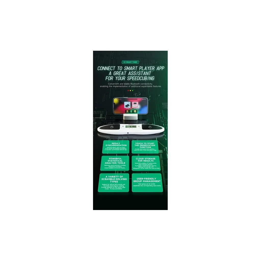 This is my first speedcube timer love it! After watching Cameron talking about all the features on YouTube I was sold I had high expectations for this timer and app. This setup blew my mind how effective tools like this timer can bring to your cubing game. The app and timer has so much potential to push you to step your speed game up. The timer is nice and compact allows you to tote around town doing solves on the go. Very well made.