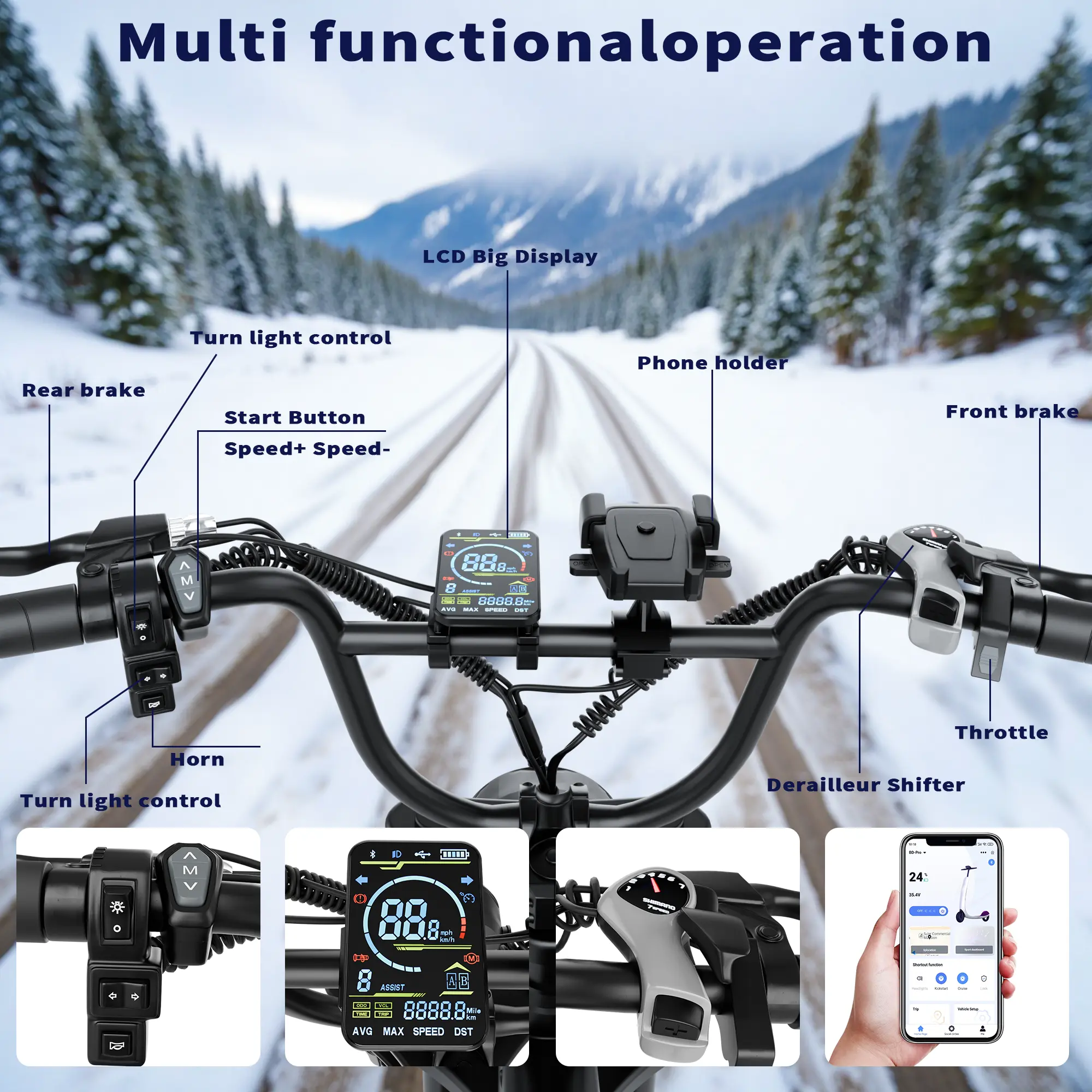 【FULL SUSPENSION】 – Front and rear quad-shock suspension ensures a comfortable ride on various terrains, including city streets, mountain trails, snow, and beach roads.