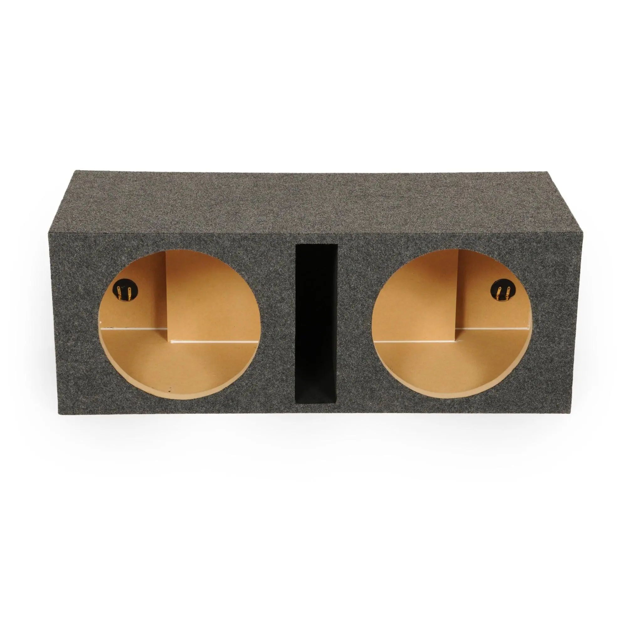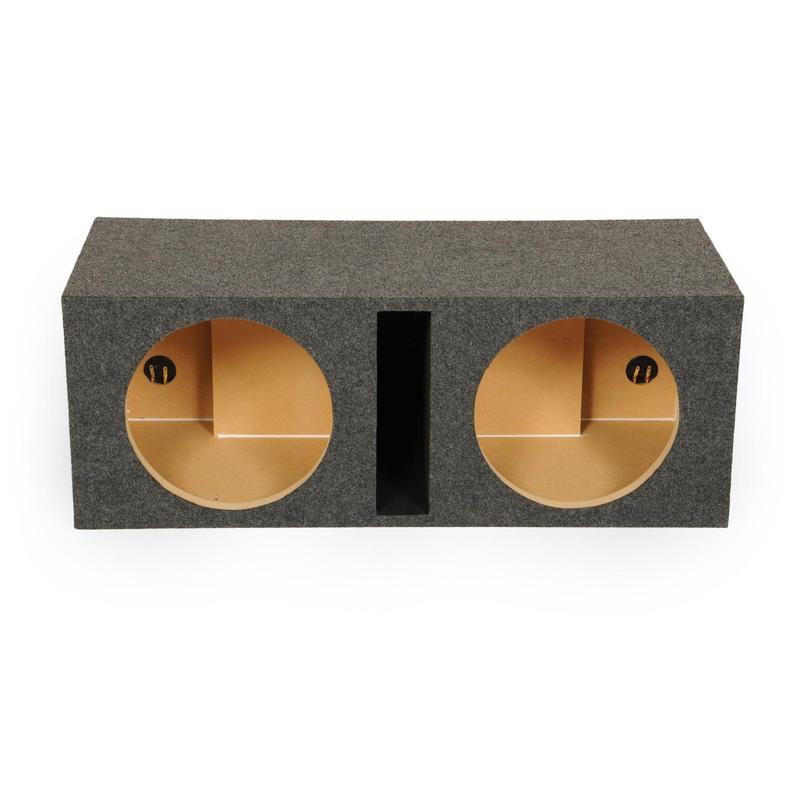 Specs: Holds (2) 10-inch car audio subwoofers; Air space: 1.1 cubic feet per chamber, 2.2 cubic feet total