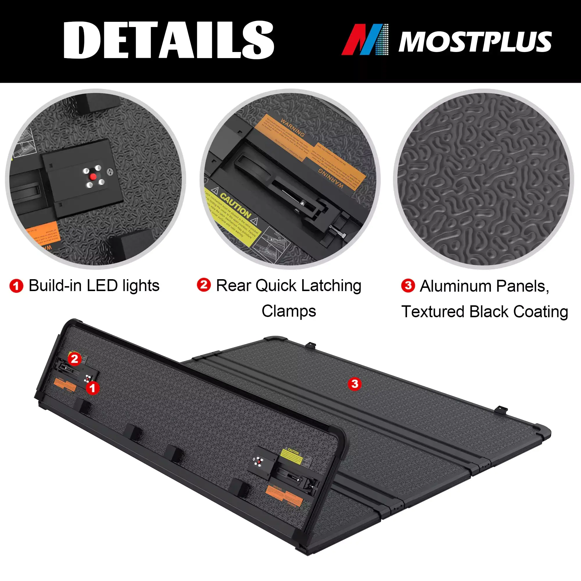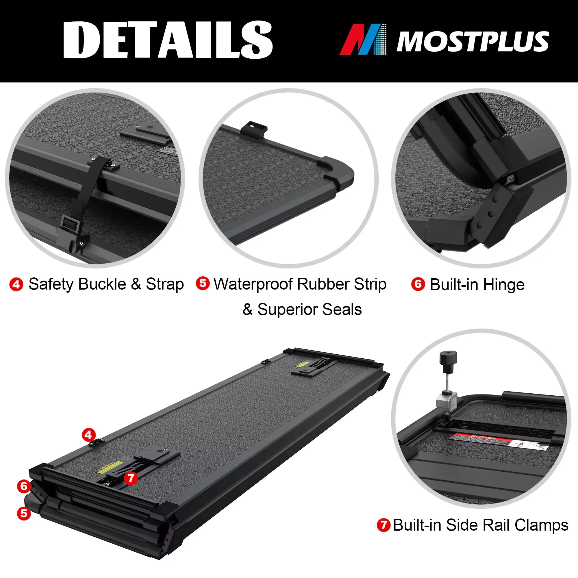 MOSTPLUS Quad-fold hard bed cover not only protects the gear you want to keep clean, dry, and secure, but it can also improve your gas mileage and optimize your truck's appearance.