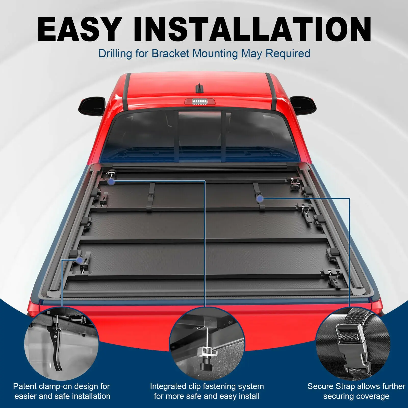 ·Straps hold the cover in the open position for safe driving
