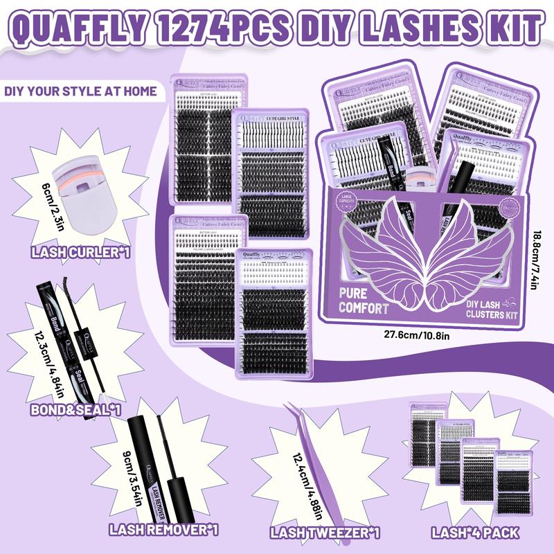 QUAFFLY 1274Pcs Lash Extension Kit 40D+60D+80D+100D+Bottom Lashes+Spike lashes Fluffy Lash Clusters Individual Lash Clusters With Lash Bond&Seal Eyelash Bond Glue Lash Remover Tweezer Lash Curler for Natural DIY Cluster Eyelash Extensions KitQUAFFLY 1274Pcs Lash Extension Kit 40D+60D+80D+100D+Bottom Lashes+Spike lashes Fluffy Lash Clusters Individual Lash Clusters With Lash Bond&Seal Eyelash Bond Glue Lash Remover Tweezer Lash Curler for Natural DIY Cluster Eyelash Extensions KitQUAFFLY 1274Pcs Lash Extension Kit 40D+60D+80D+100D+Bottom Lashes+Spike lashes Fluffy Lash Clusters Individual Lash Clusters With Lash Bond&Seal Eyelash Bond Glue Lash Remover Tweezer Lash Curler for Natural DIY Cluster Eyelash Extensions Kit