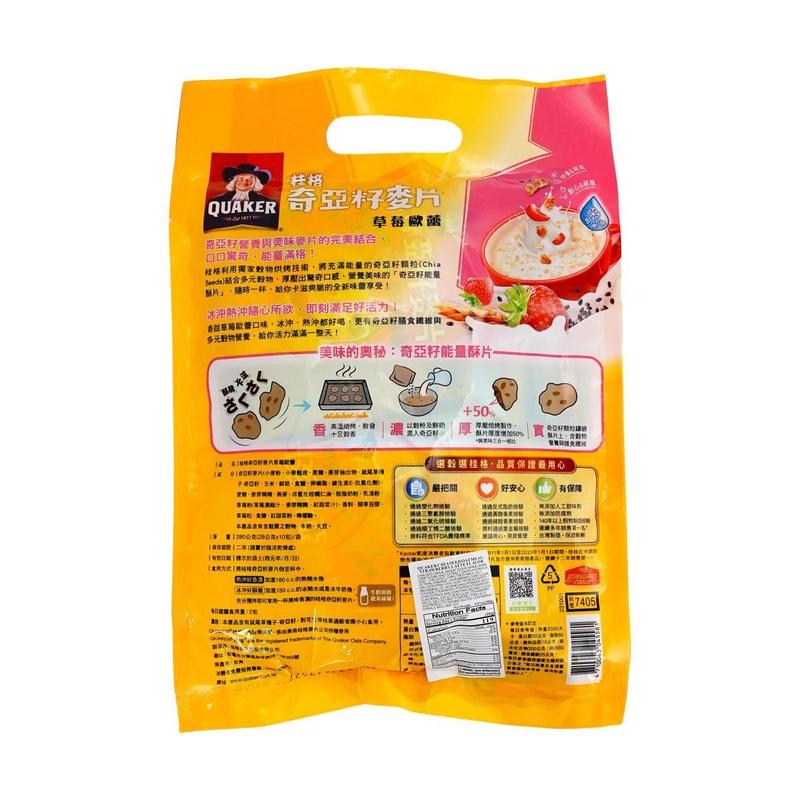 Quaker Taiwan Strawberry Au Lait Chia Seed Oatmeal 10 Packs 280g - Instant Breakfast Cereal Drink, Cold Water Mixable