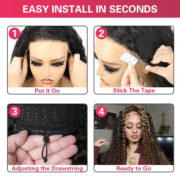 This wig features a Burmese curly design, pre-cut for a natural look. The lace front is glueless, making it beginner-friendly and easy to wear. It comes with an elastic drawstring for a secure fit. Made from 100% human virgin hair, ensuring a natural appearance.