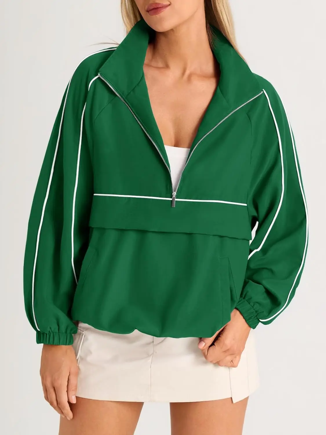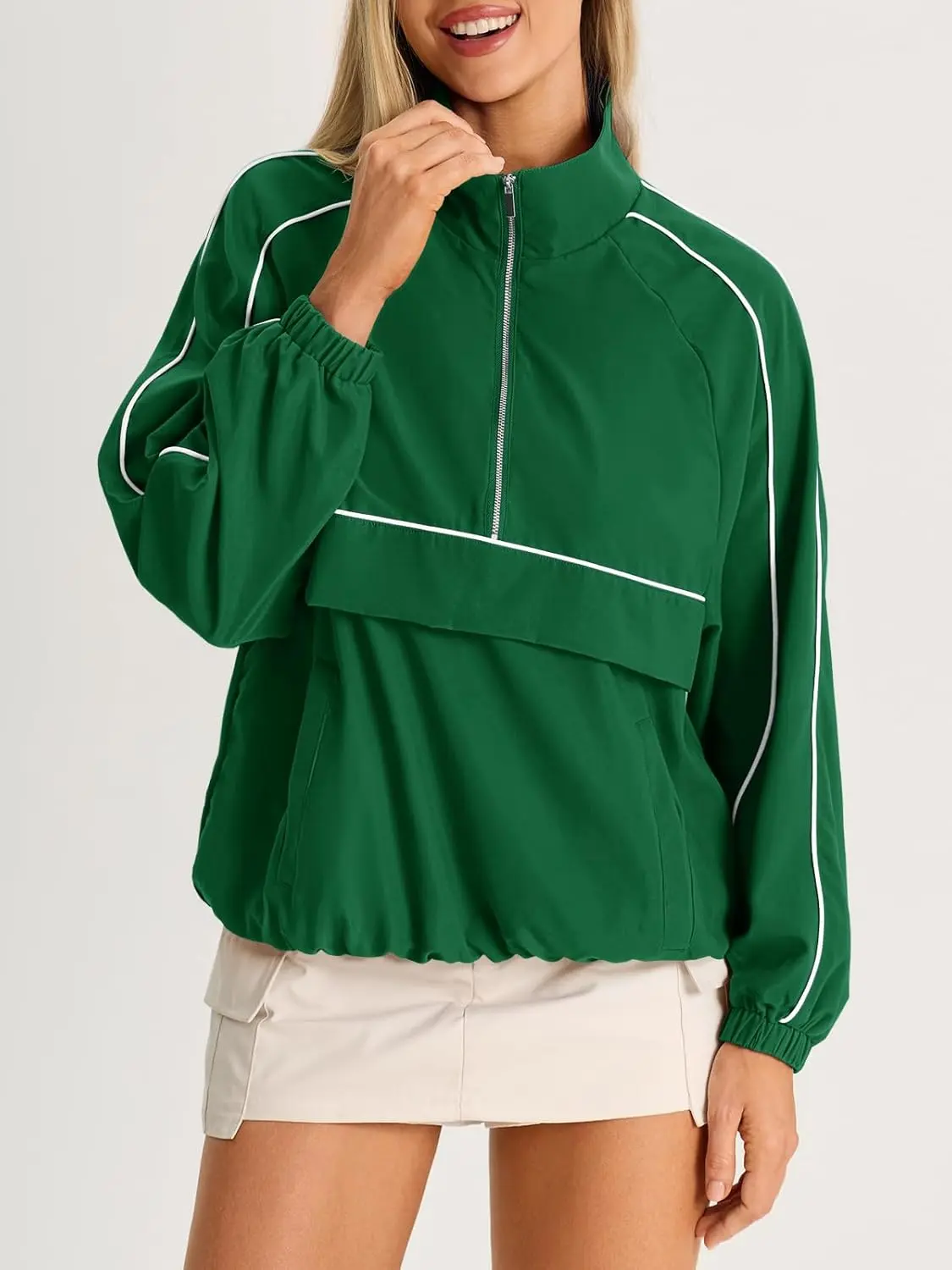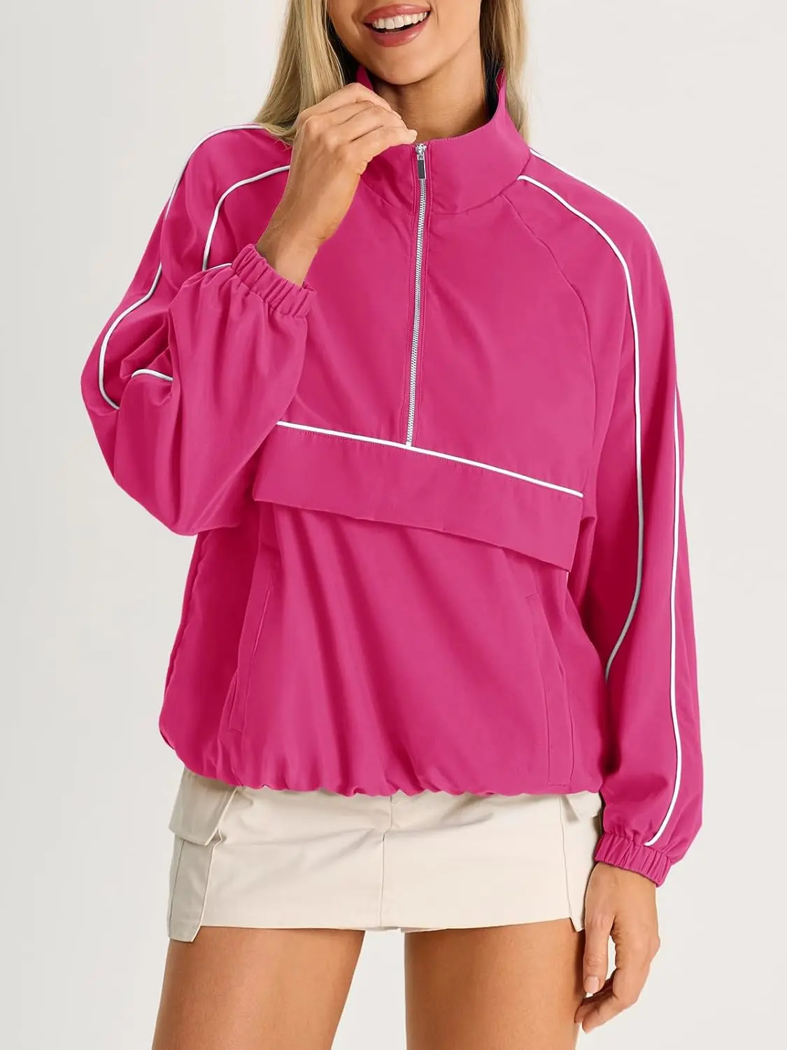 ·Quarter-Zip: With contrast trims and an elasticated hem.