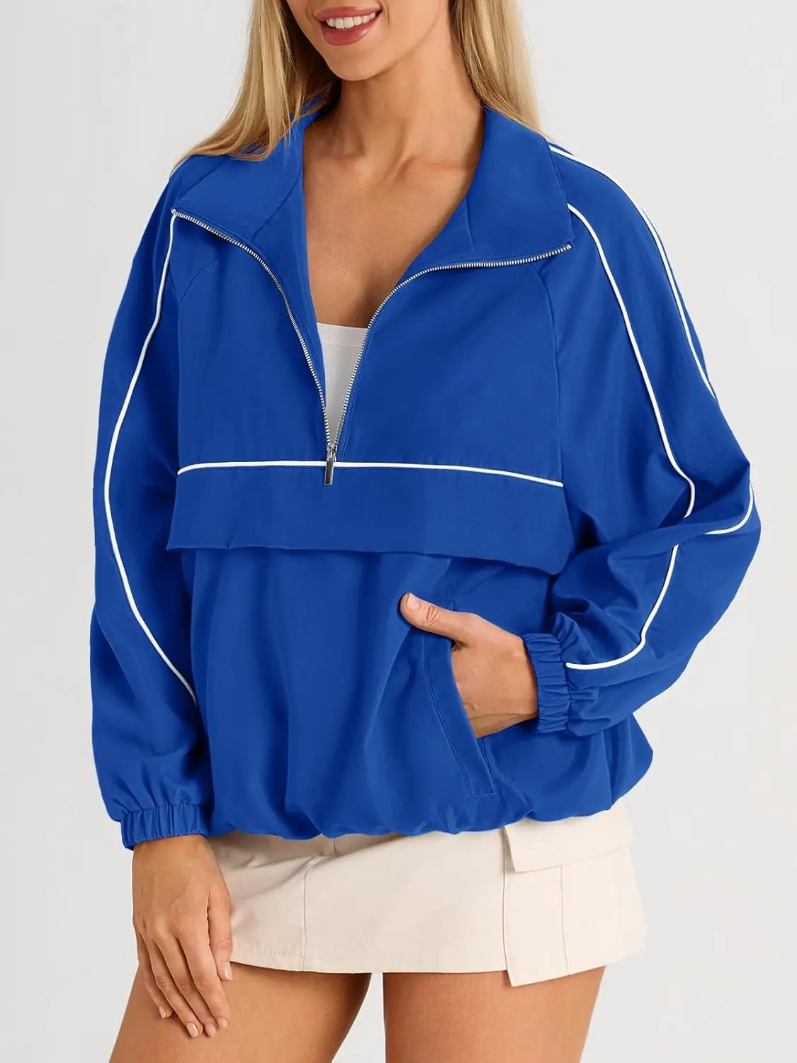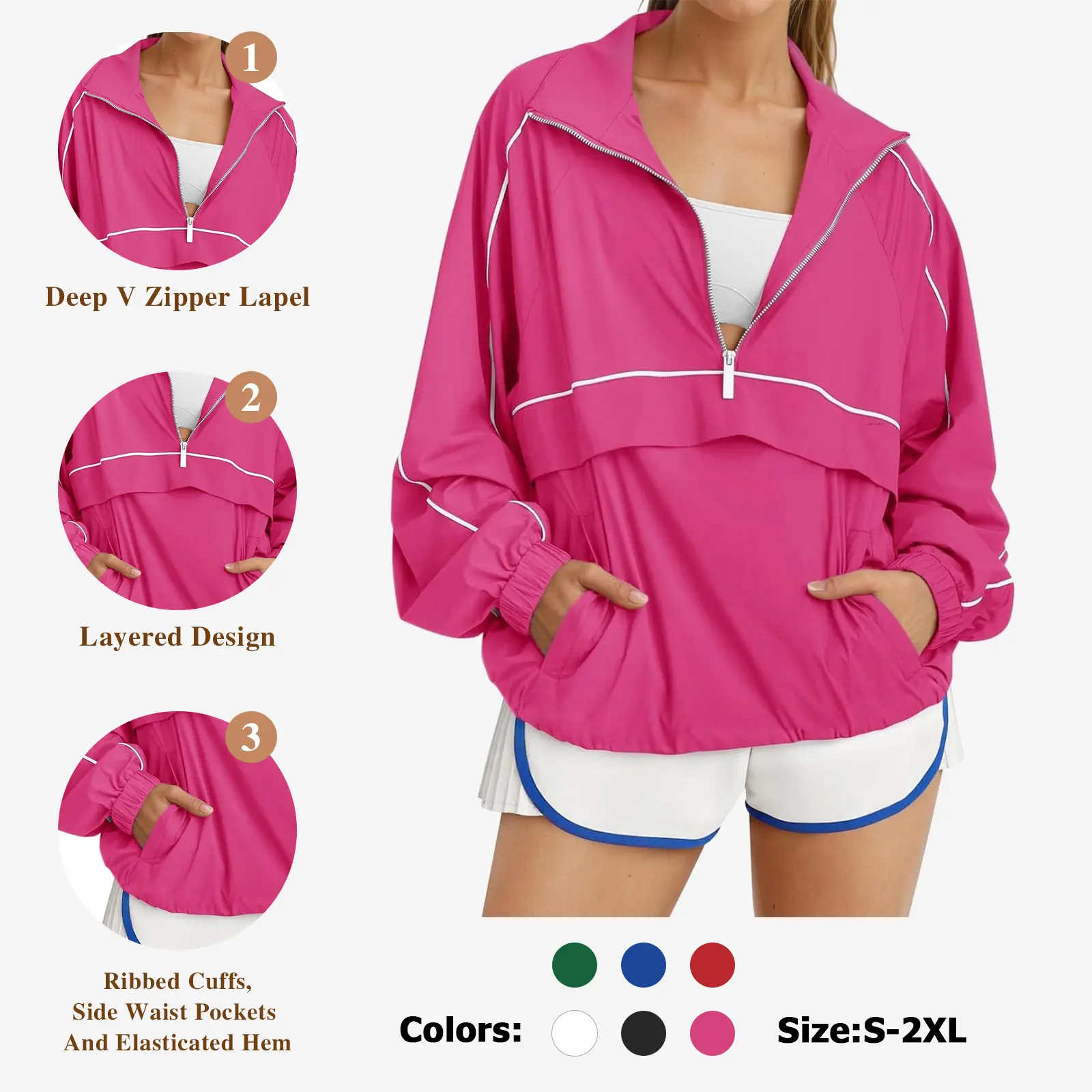 Crafted from lightweight, moisture-wicking fabric, this oversized half zip sports pullover offers comfort and a relaxed fit. Perfect for workouts and casual wear. The fabric ensures you stay comfortable throughout your activities.