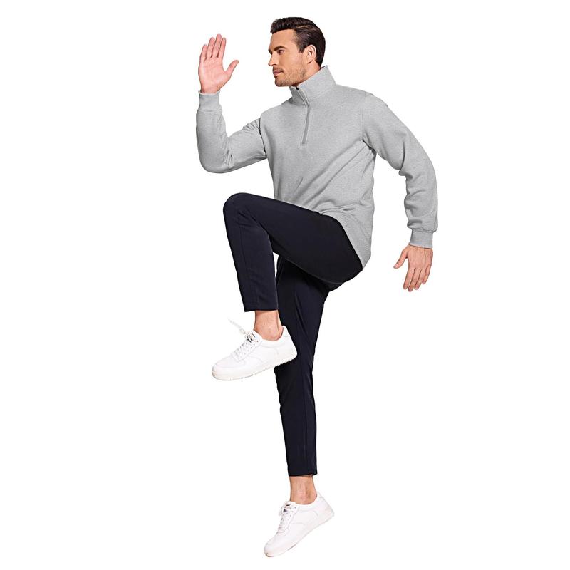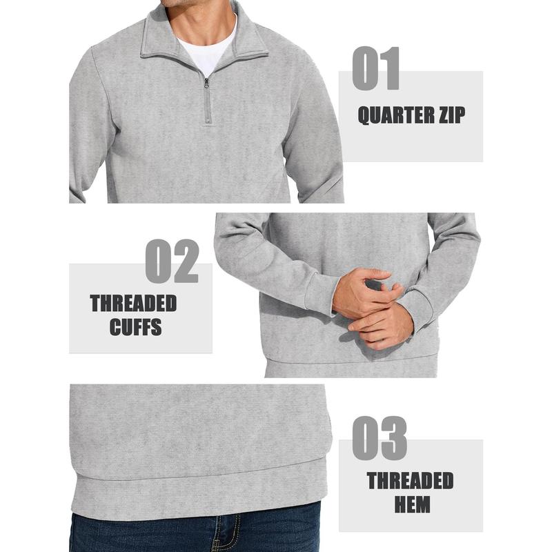 【Design】This men's pullover Sweatshirts features a classic quarter zip design that allows you to adjust the neckline to your liking, mock neck, solid color, long sleeve, ribbed cuffs, and hem. Moderate thickness fall and winter warm sweaters.