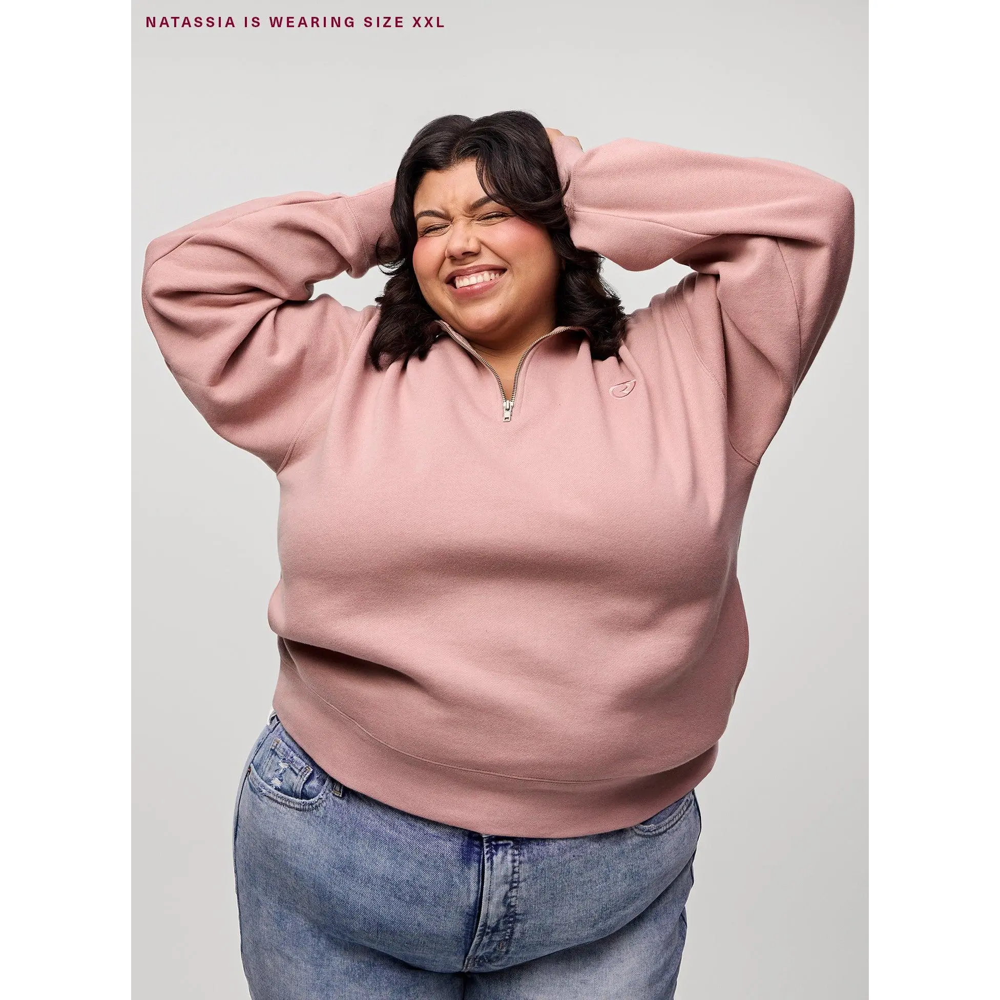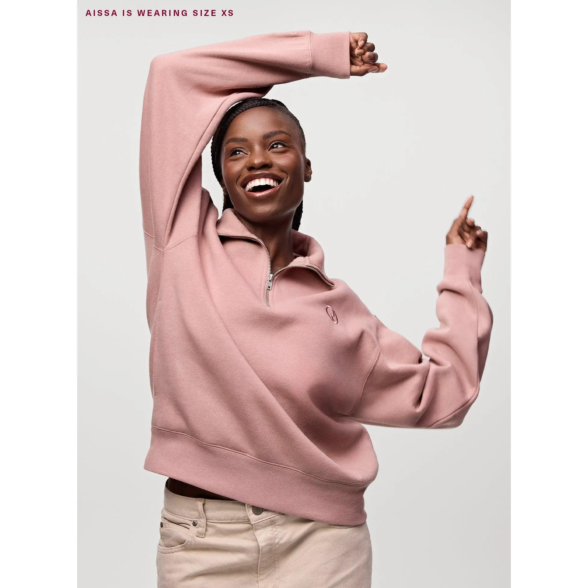 I absolutely LOVE this!!!! I wanted the hoodie but they have been sold out for awhile! Highly recomend this zip sweatshirt. It’s super soft and comfy and best of all the sleeves are actucally long! The fit is immaculate! So flattering🩷