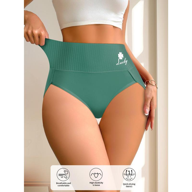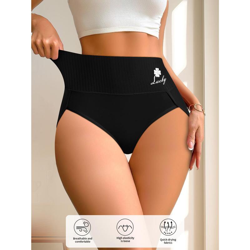 QUASTI 4 Piece High Waist Women's Fashion Briefs Set, Hip Lifting Sports Panties With Waistband Letter Design, Mix Colors High Elasticity Breathable Comfortable Soft Underwear, Anti Roll Edge Basic Women's Panty, S-XXL