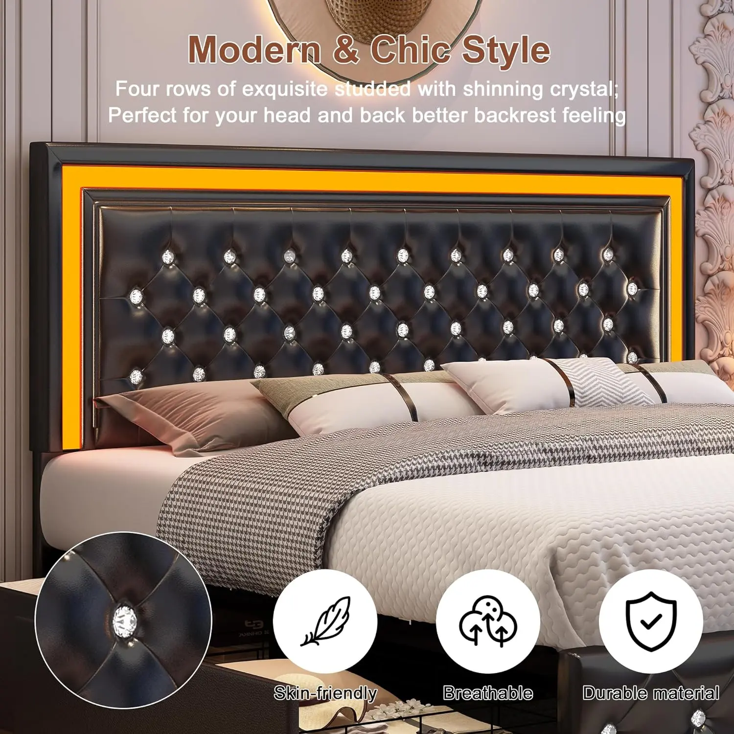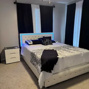 Built-in RGBW LED lights in the adjustable headboard allow you to customize colors, brightness, and lighting modes via mobile APP or remote control. Music Sync mode reacts to sound and rhythm, creating an immersive and relaxing bedroom atmosphere.