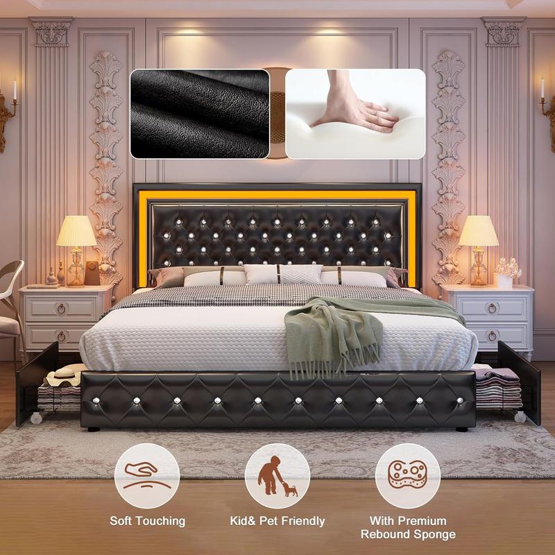 Queen Bed Frame with 4 Storage Drawers: