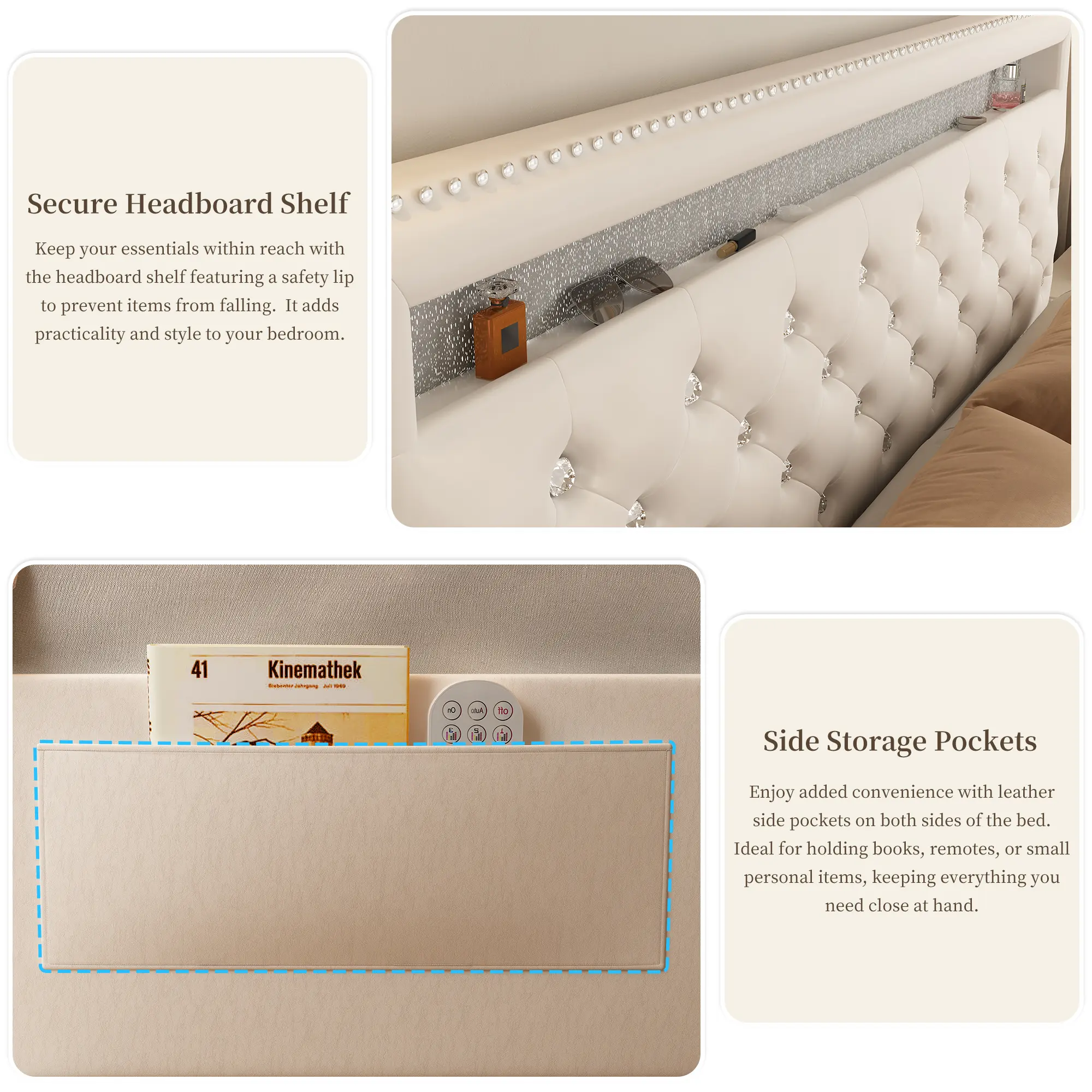 ·Storage Drawers & Headboard Pockets