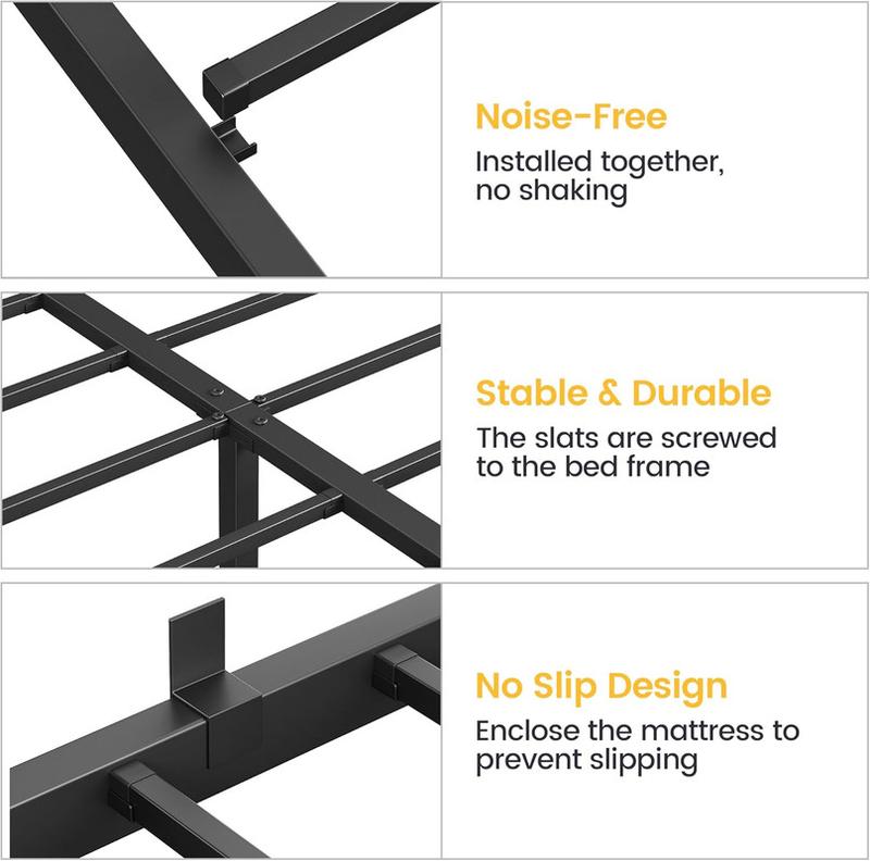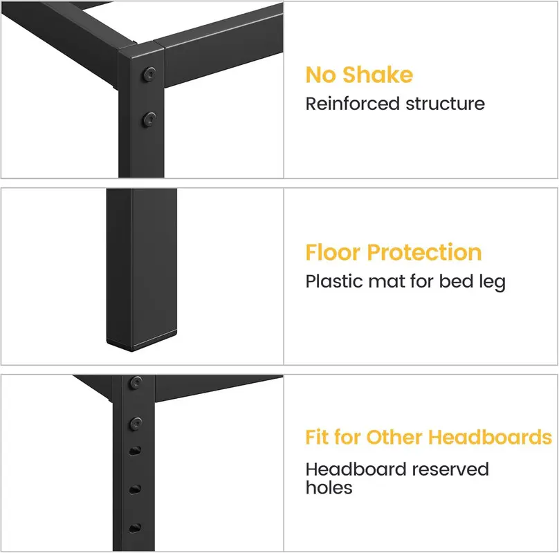 Robust Support: Crafted from high-quality metal, our full bed frame boasts reinforced legs to prevent twisting, ensuring a sturdy structure capable of supporting up to 800 lbs, providing you with unwavering stability and peace of mind.