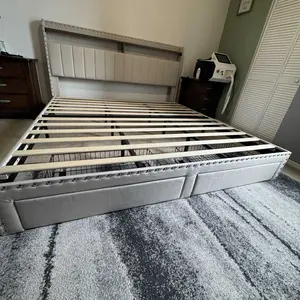 ·【NO Noise Full Bed Frame with Headboard】 On the queen bed frame with storage we made a mute sponge strip design, and we used the pasting method to fastened the supporting wooden slats to effectively prevent the bed frame from creaking, our full size bed frame ensure your healthy sleep.