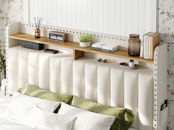 ·【Stylish Design Bed Frame with Storage】 The stylish rivet design and upholstered headboard make you more comfortable to lean on the full bed frame with storage.