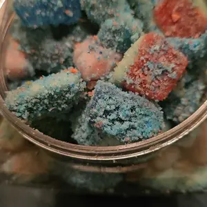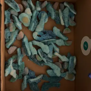 Well unfortunately this was a very wasted $40. I was so excited to get my first Gringas order…until I opened it. There was 3 gumballs and the rest was gummie sharks and eggs NOTHING else. There was an “okay” amount of cotton candy crunchy stuff, and the delivery was quick, but overall a disappointment. I’m glad I decided not to get the 48oz container. I was really looking forward to loving this because I wanted to order the cotton candy Swedish candy mix as I’ve never tried any of it, but now I’m not sure.
