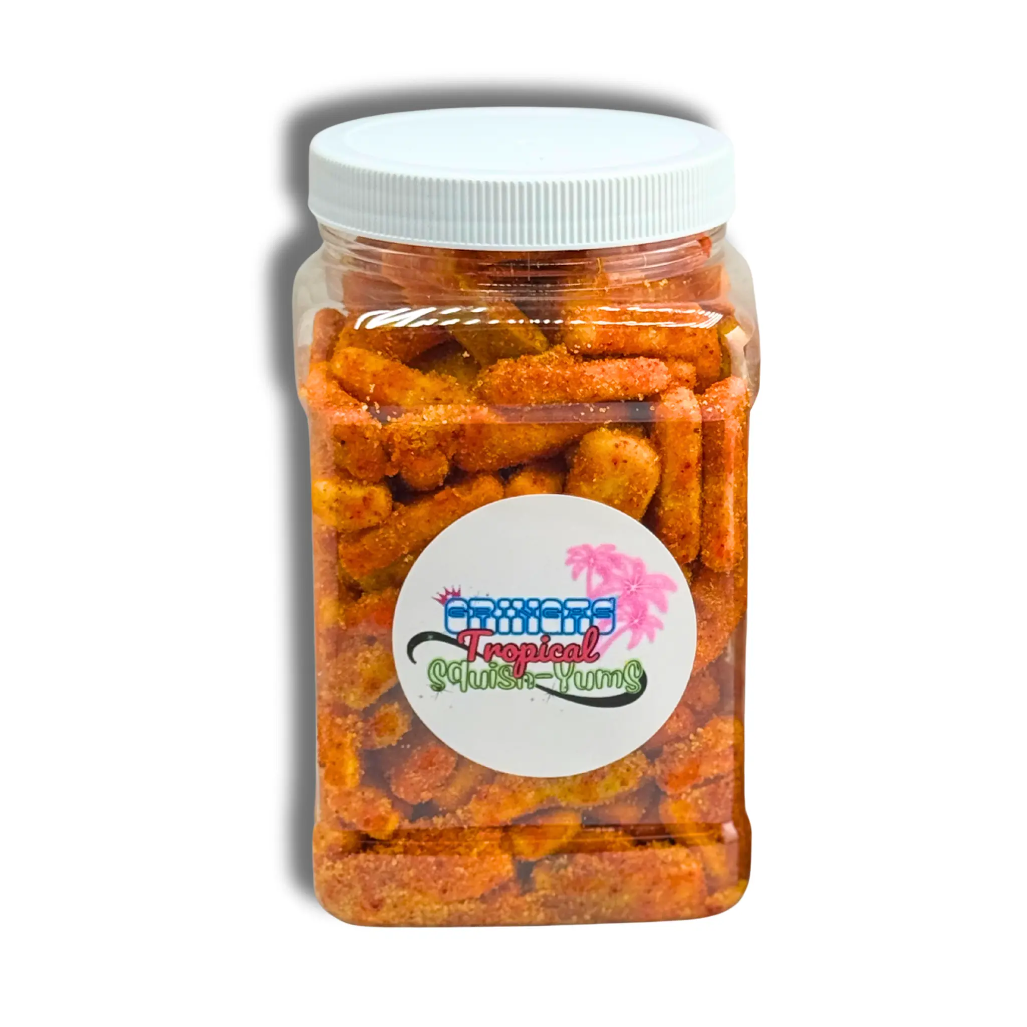 ·Tropical Twist: Fruity mix coated in pineapple-mango powder.