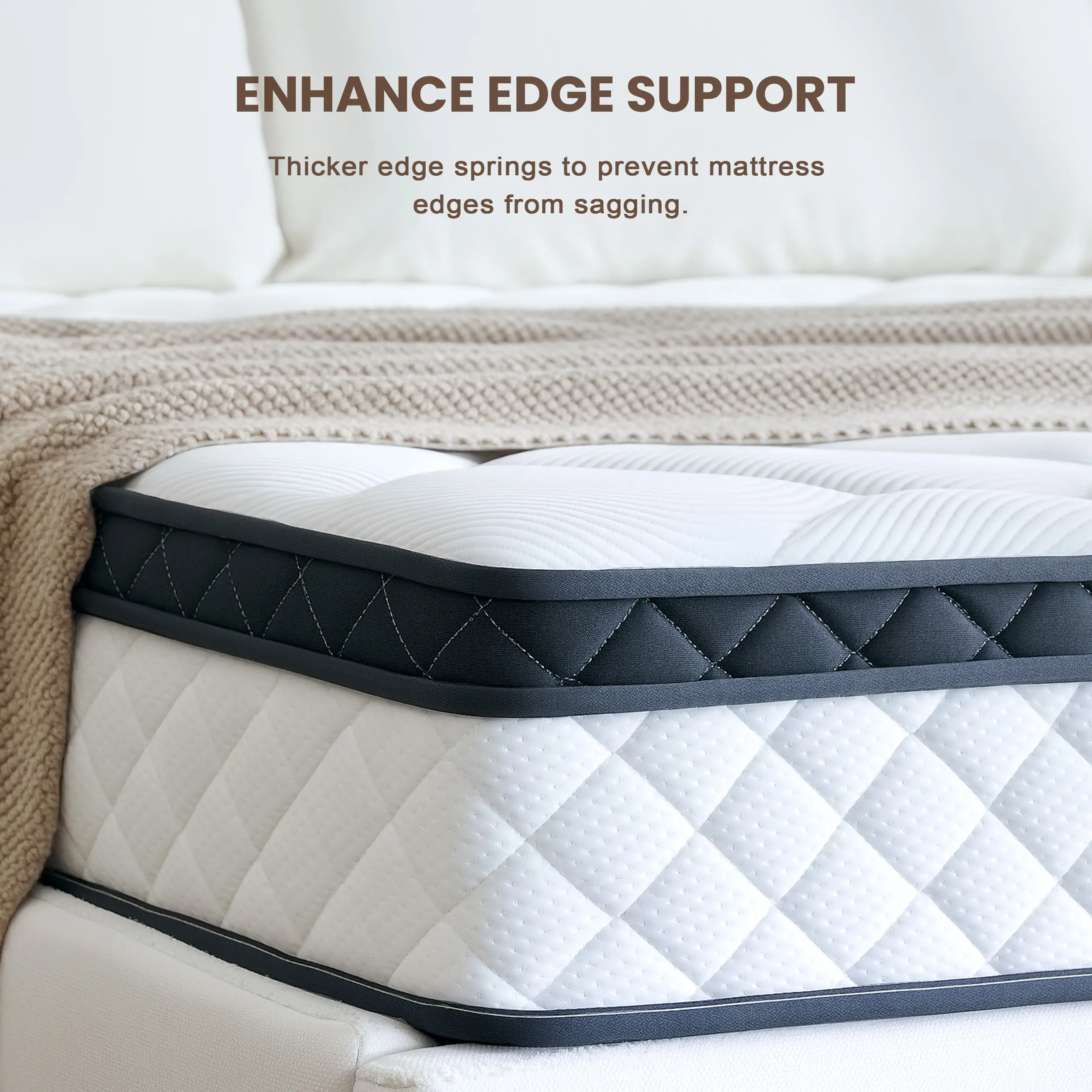 • Reinforced perimeter support and precision-crafted coils absorb movement. Individual pocket coils and seven-layer structure maintain spinal health. Near-zero motion transfer allows undisturbed rest. Enhanced edge-to-edge support prevents the "rolling off" feeling.