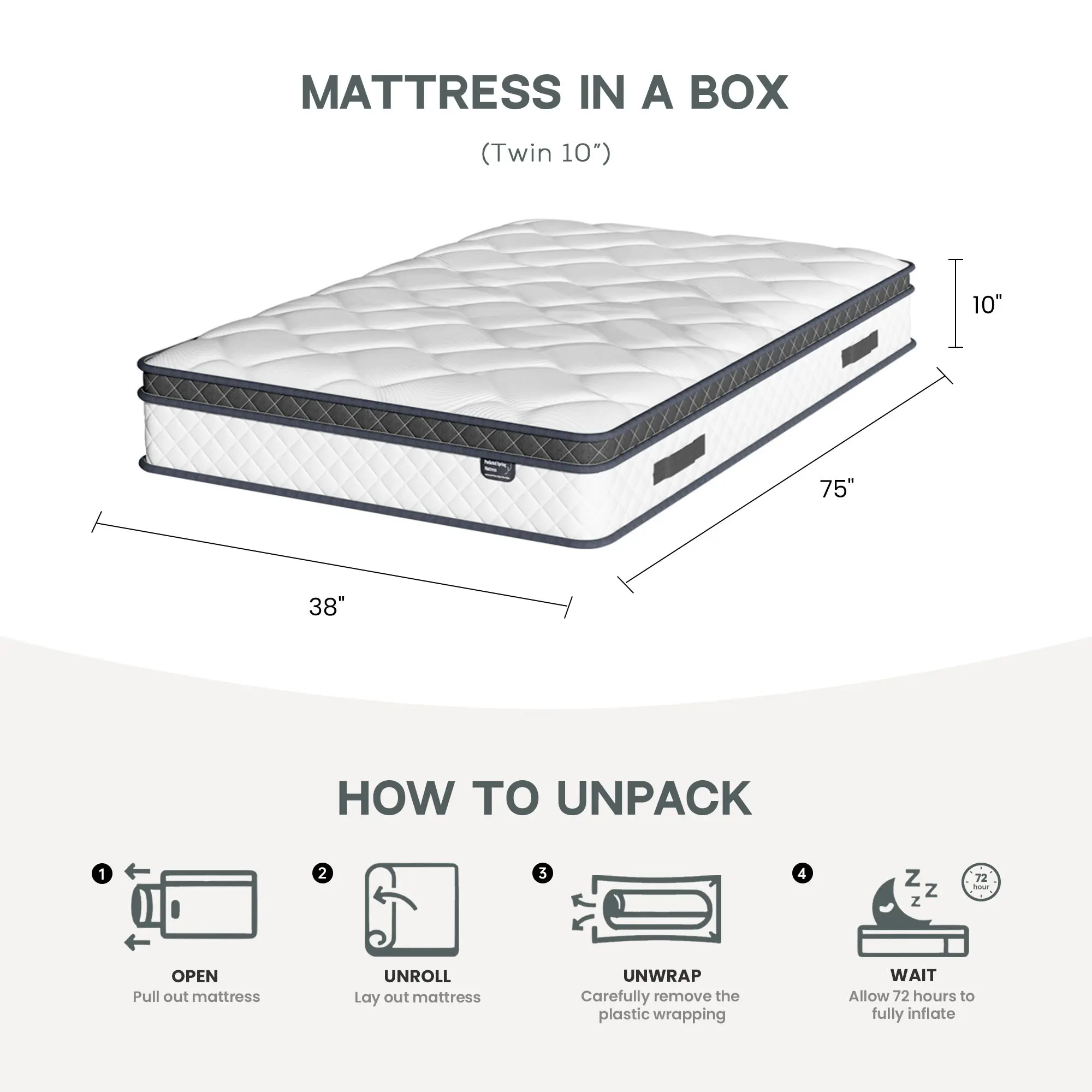 • 12-inch hybrid mattress arrives compressed. Unbox, cut the wrap, and watch it expand. Allow 72 hours for full shape; memory foam expands faster in warmer rooms.