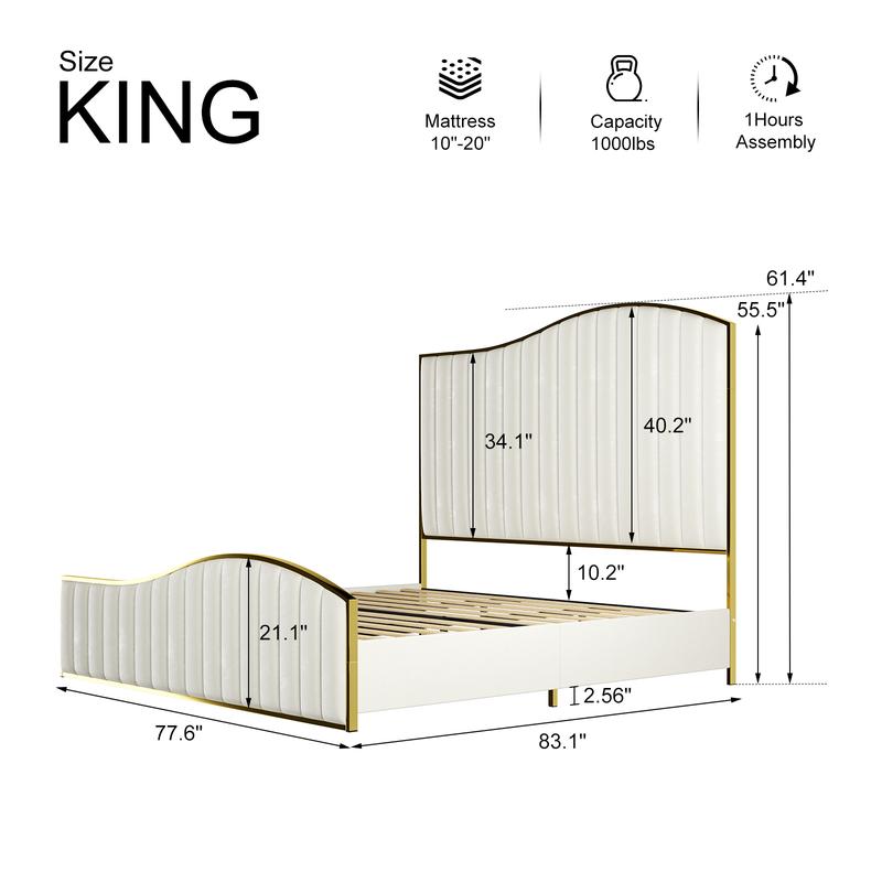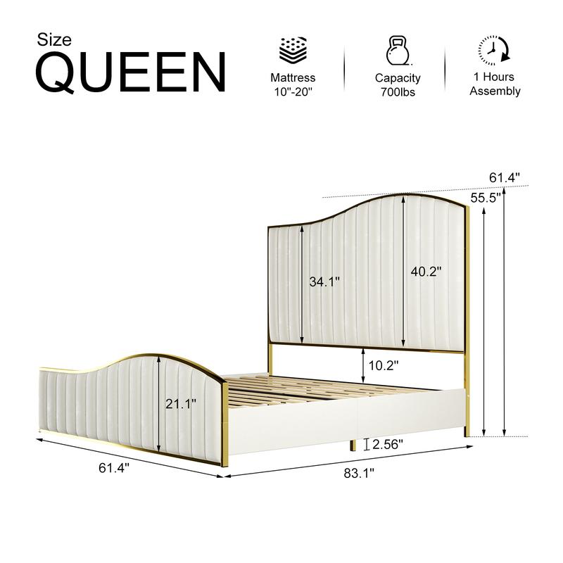 ·Stylish Design: The bed frame features a 61.4" tall harp headboard and footboard with gold plating trim, adding an elegant touch to your room.